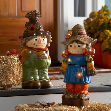 Decorative Indoor/Outdoor Pumpkins With Carved-Wood Look, Set of 2