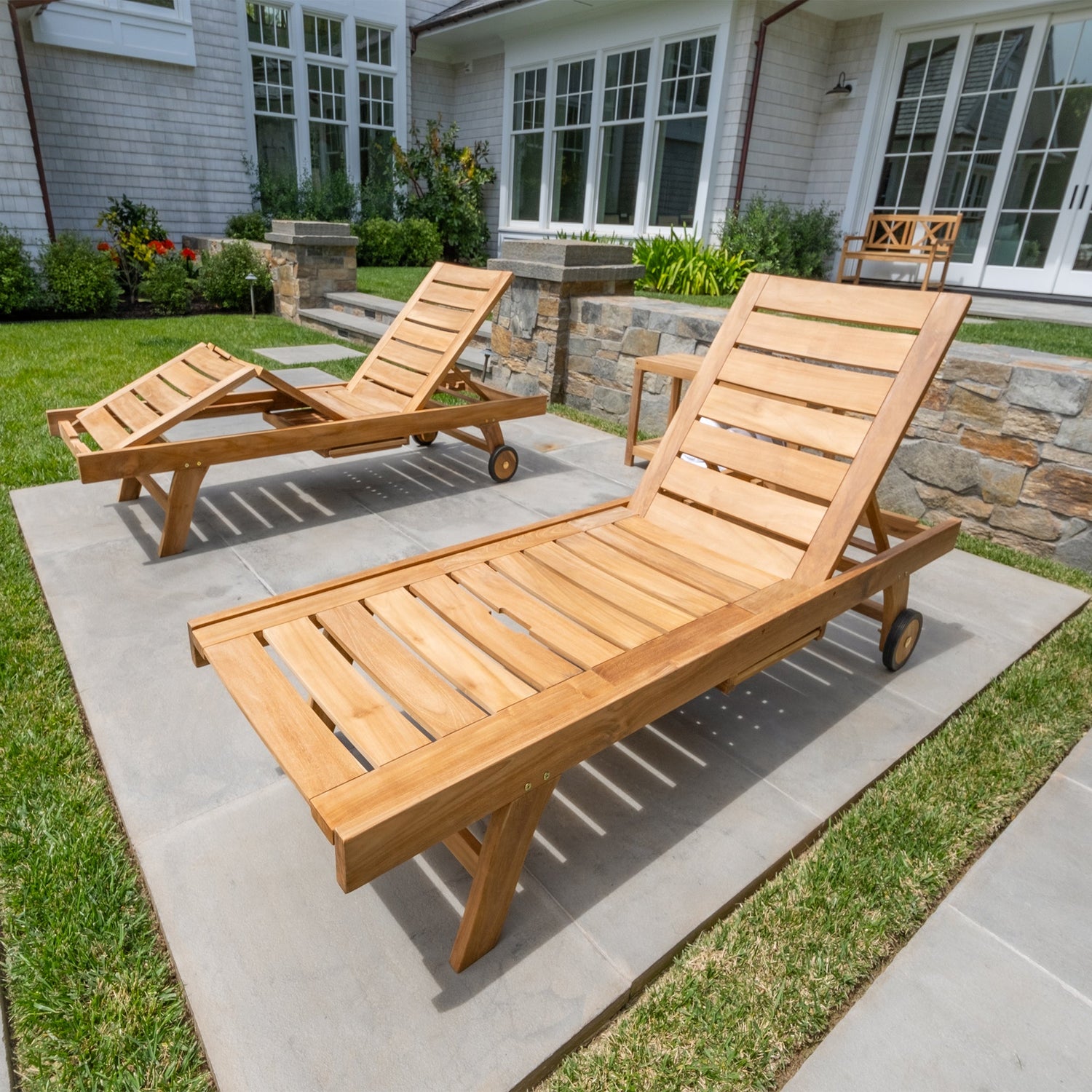 This poolside lounge chair is everything you'd expect from an outdoor recliner and more featuring the robust seating ability. It features weather-resistant teak wood construction that is built to withstand the elements. Our lounger reclines for ultimate relaxation paired with a side table to accommodate your beverage, food, book or anything else you might be lounging with. With easy movement thanks to its two back wheels, it is a great addition to your lawn, patio, deck, poolside, or other outdoor space!