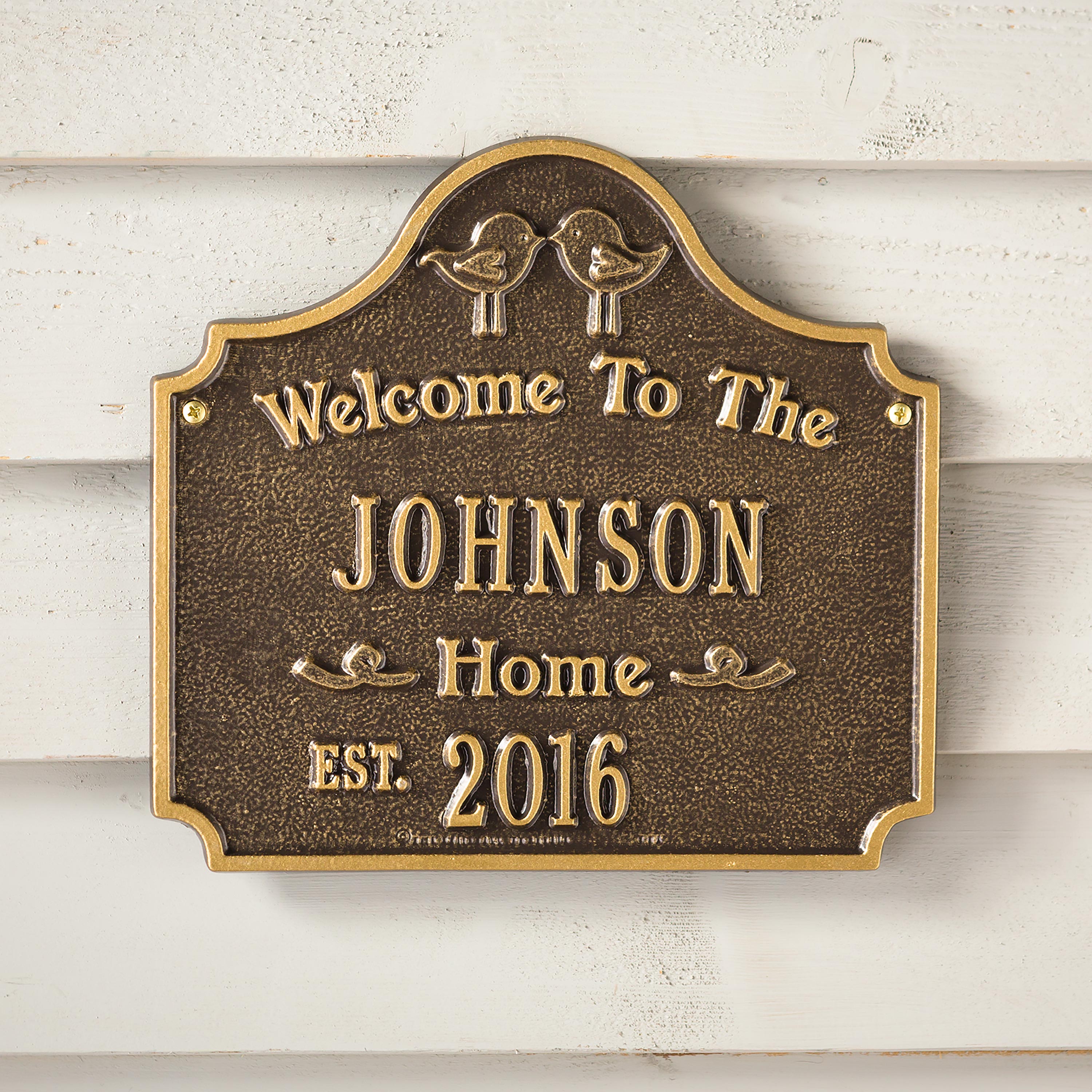 Patterned after plaques used on historic landmarks, our Love Birds House Plaque greets guests with a warm message when they enter your home. Made of recycled cast aluminum, this plaque features contrast lettering that make the design stand out.