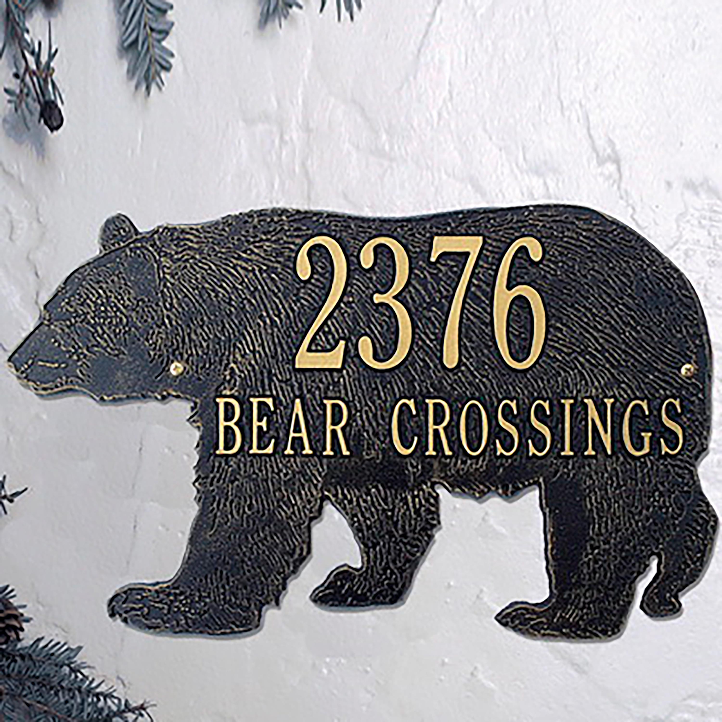 American-Made Bear Silhouette Address Plaque In Cast Aluminum