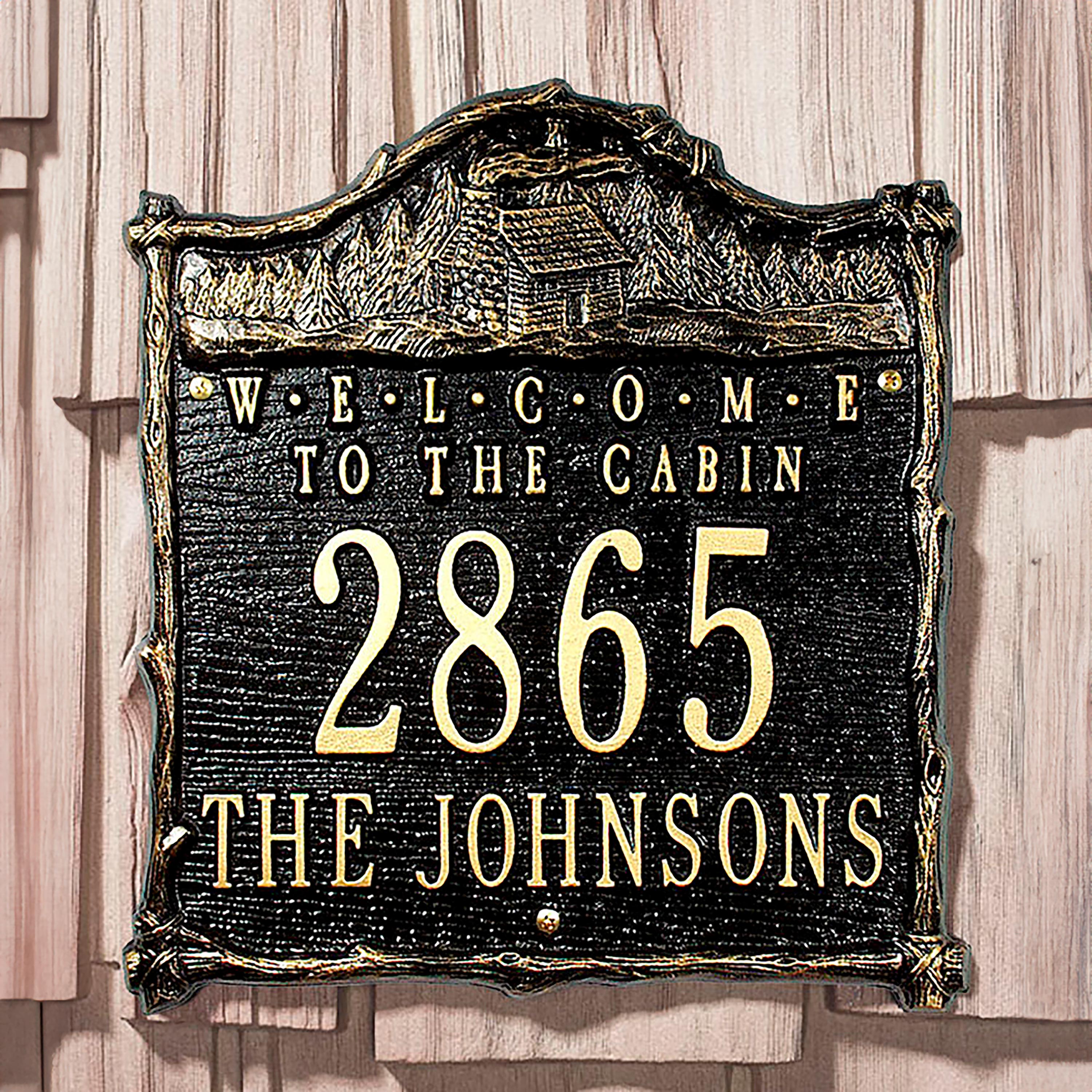 Custom-made in the USA from recycled cast aluminum, our charming "Welcome to the Cabin" Address Plaque suits any home. Each sign features raised metallic-hued lettering on a background color of your choice. Powder-coat finish protects them from the elements.