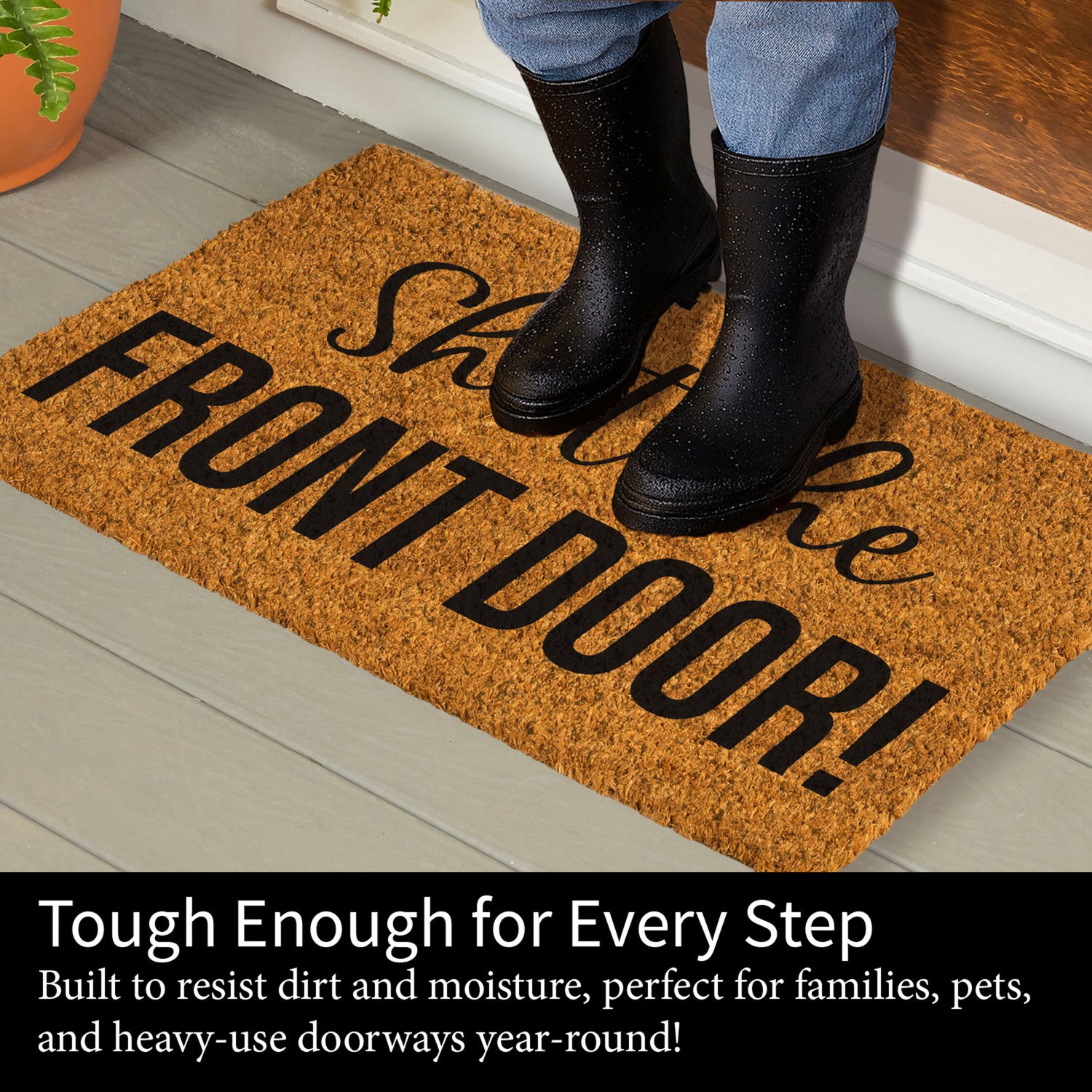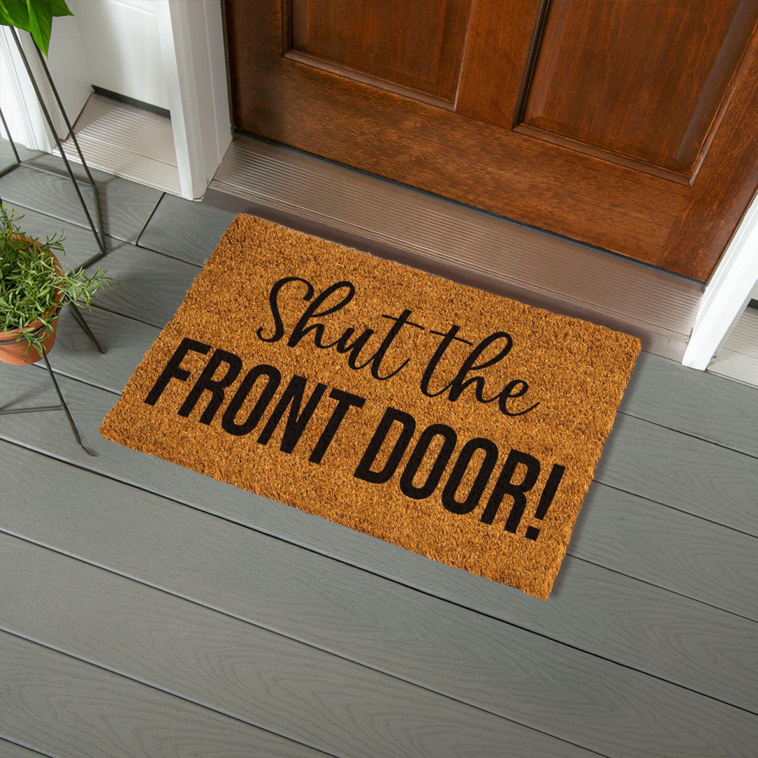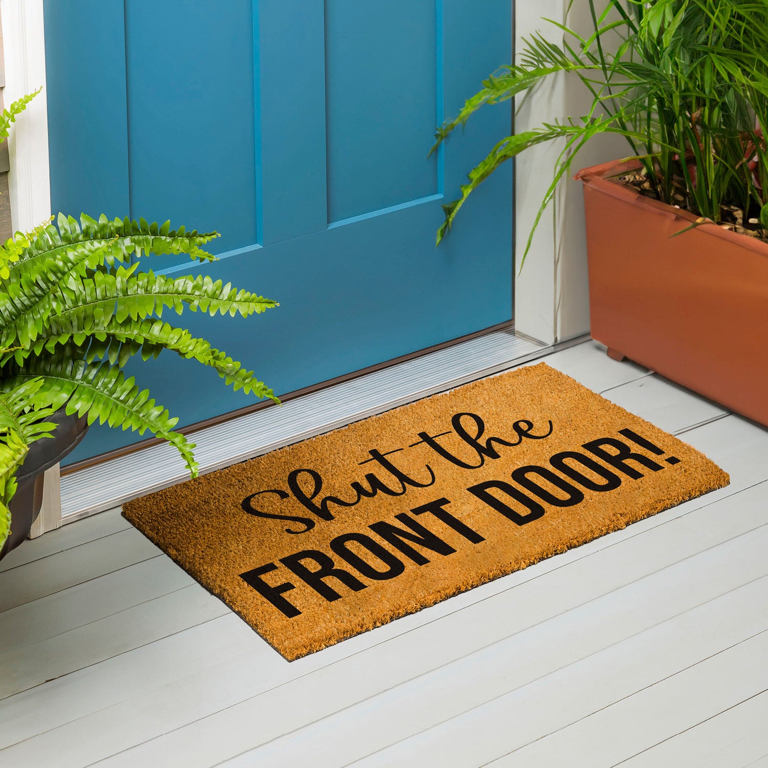 Step into spring style with this coir mat. Perfect for adding an extra charming touch to any entryway, this design is perfect for welcoming guests inside. Crafted from coco husk fiber, the eye-catching mat is natural and eco-friendly. Ideal for high-traffic areas, the mat traps dirt and debris to prevent messes from being tracked into homes. Designs are printed directly on the mats with fade-resistant dyes. Since the mat is crafted from natural coir, some shedding is to be expected. Shake off excess fibers or use a soft brush to gently sweep.
