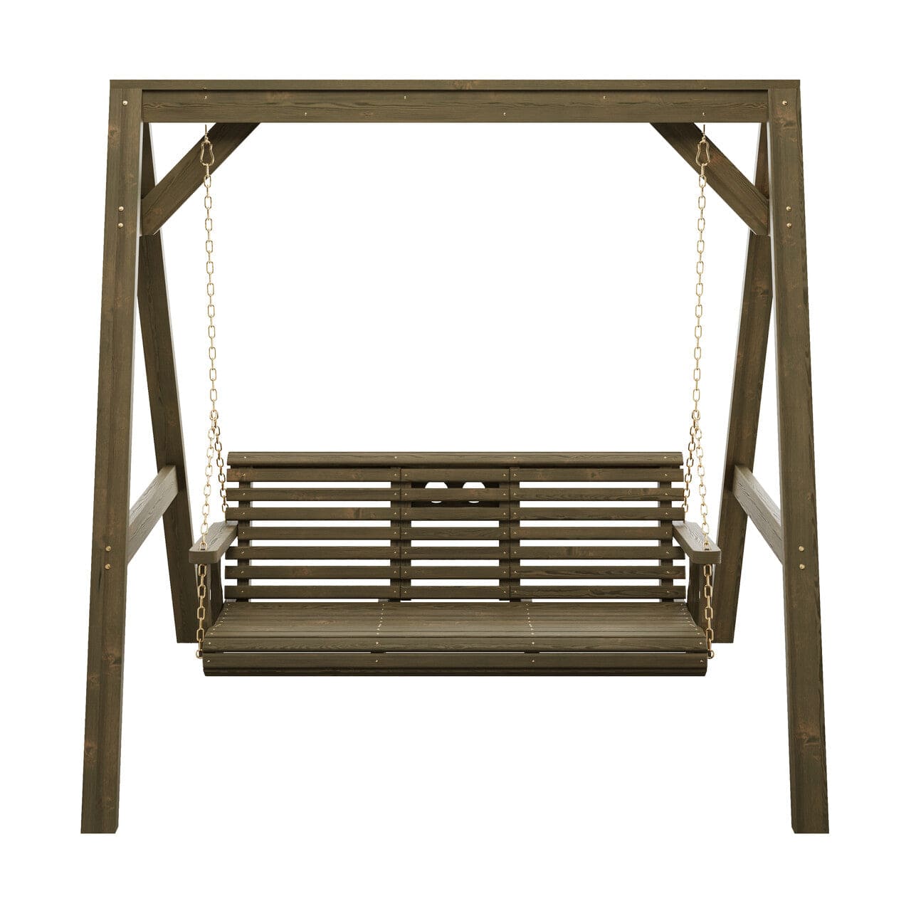 Kick back and enjoy unbeatable comfort with the Amish Casual Console Porch Swing with A-Frame Stand—a charming handmade gem that’s perfect for your outdoor haven. Crafted by skilled Amish artisans, this swing comes with a strong A-frame and a roomy seat featuring a handy center console.