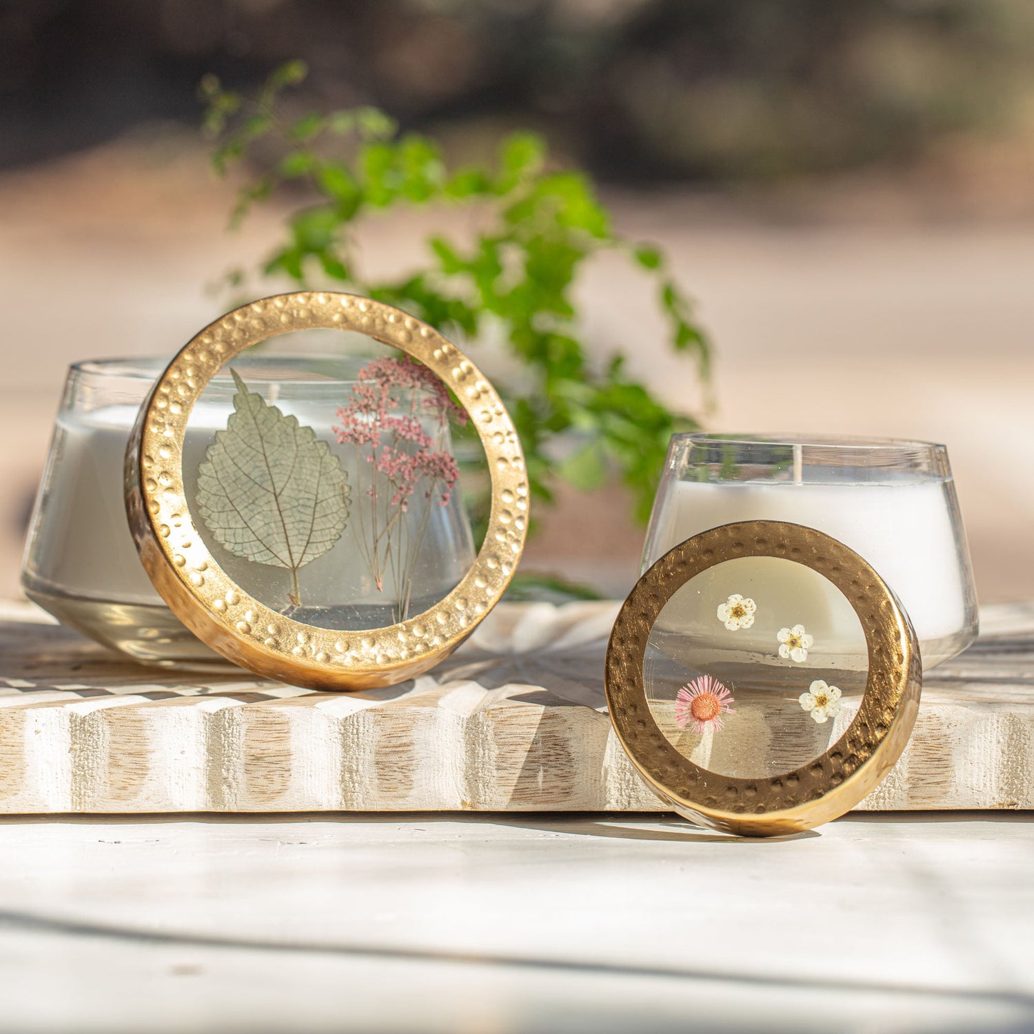 Apricot Rose Medium Pressed Floral Candle
