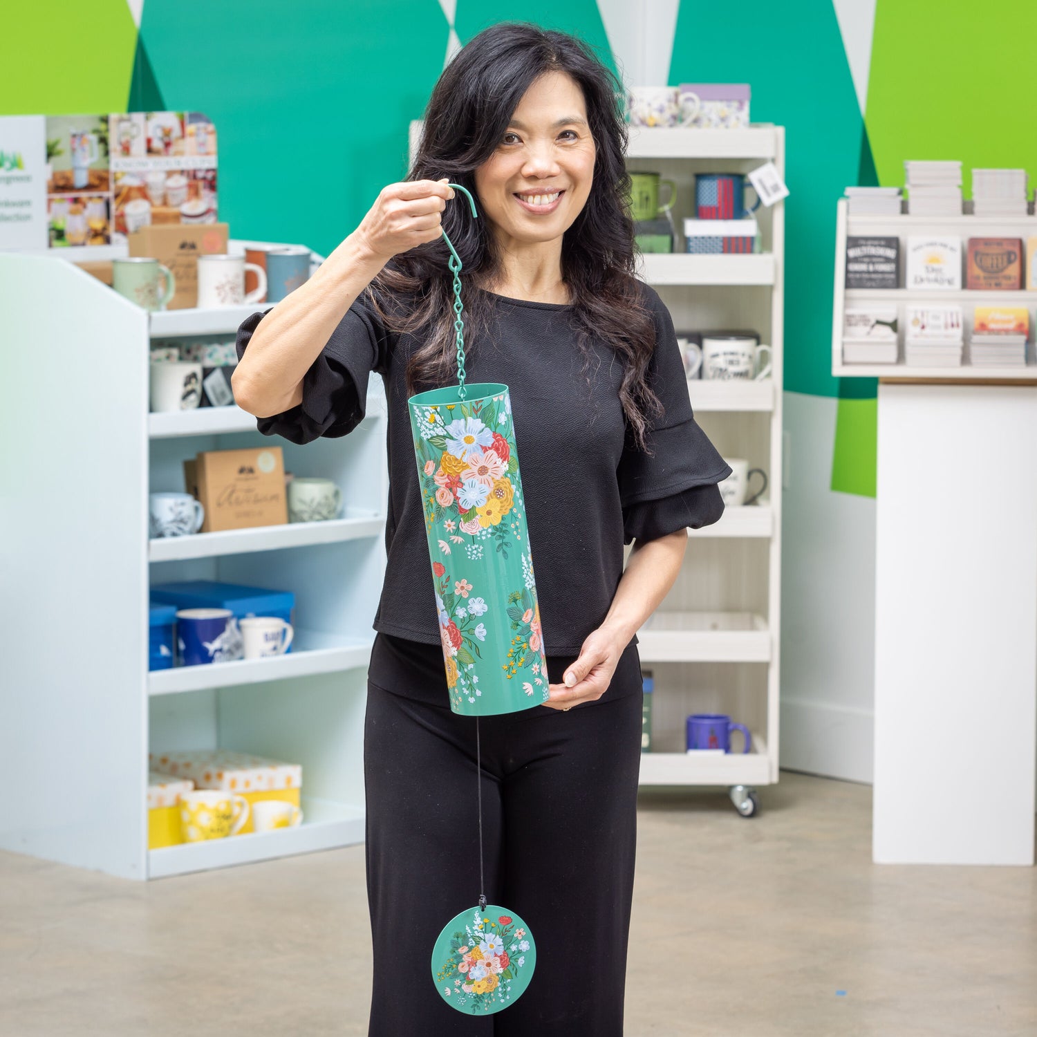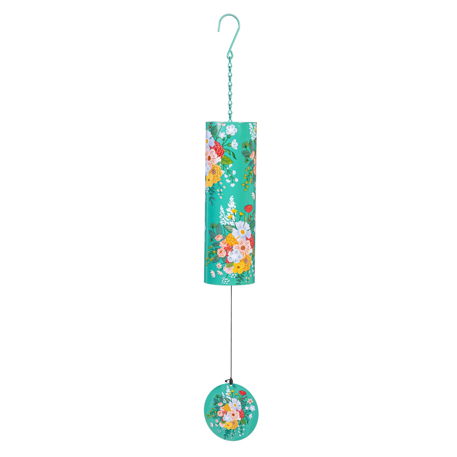 What She Shed Wind Chime, Metal, Green Florals Cylinder Chime, 36" H