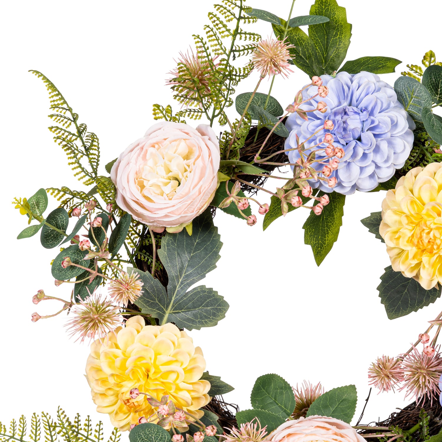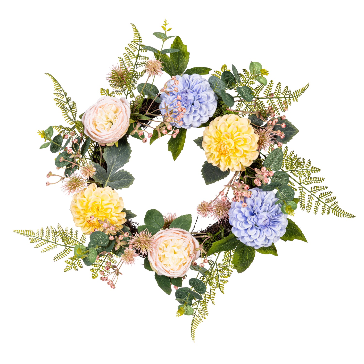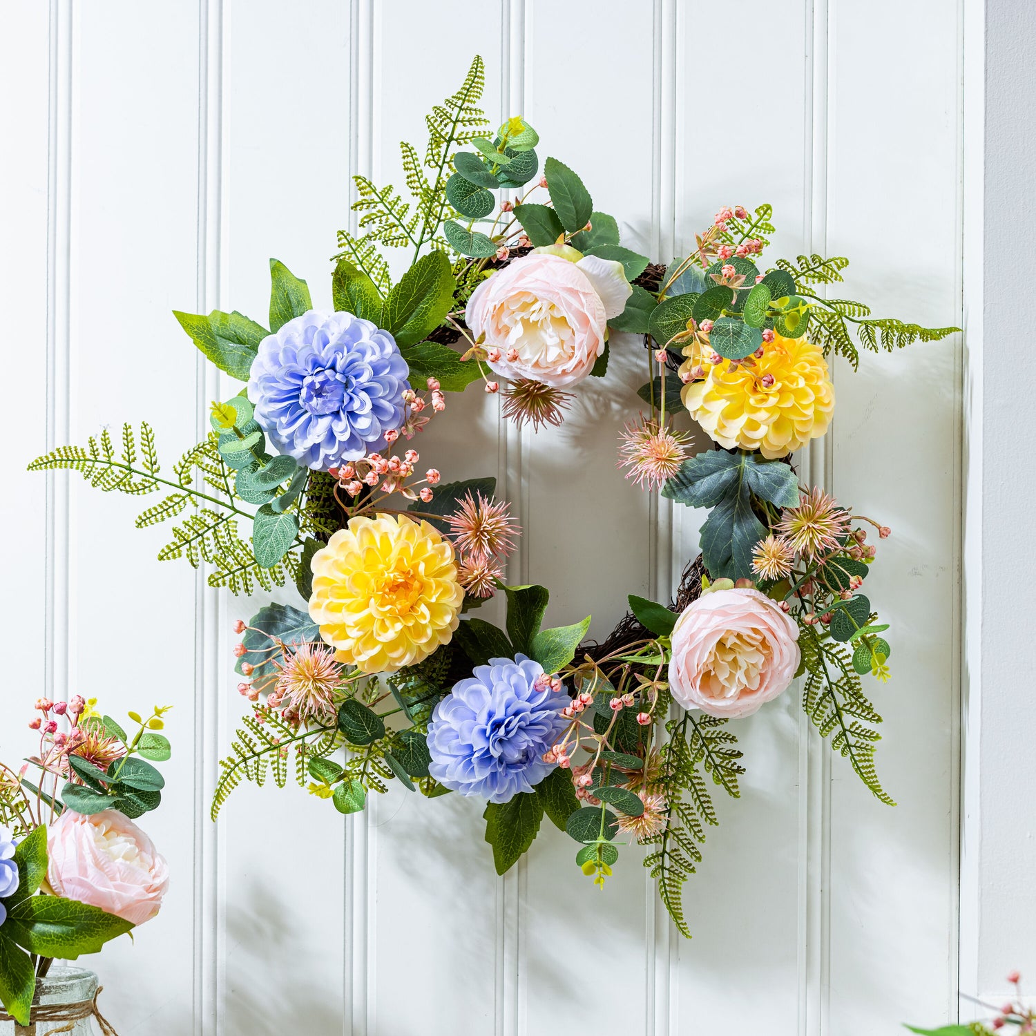 Breathe life into the home while welcoming friends, family, and other guests with this wreath. It’s made with beautiful flowers and lush greenery. Hang this wreath on the front door or on a wall. Everyone who visits will be enamored by this beautiful piece. It makes a great gift for anyone who loves to add seasonal décor to their home.
