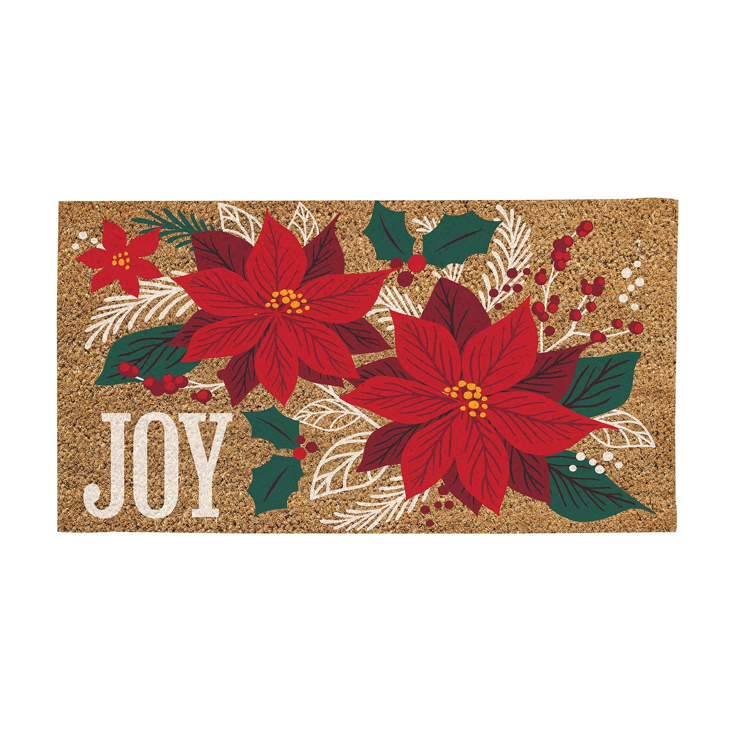 Step into winter style with this coir mat. Perfect for adding an extra charming touch to any entryway, this welcoming design features a stunning poinsettia theme. Crafted from coco husk fiber, the eye-catching mat is natural and eco-friendly. Ideal for high-traffic areas, the mat traps dirt and debris to prevent messes from being tracked into homes. Designs are printed directly on the mats with fade-resistant dyes. Since the mat is crafted from natural coir, some shedding is to be expected. Shake off excess fibers or use a soft brush to gently sweep.