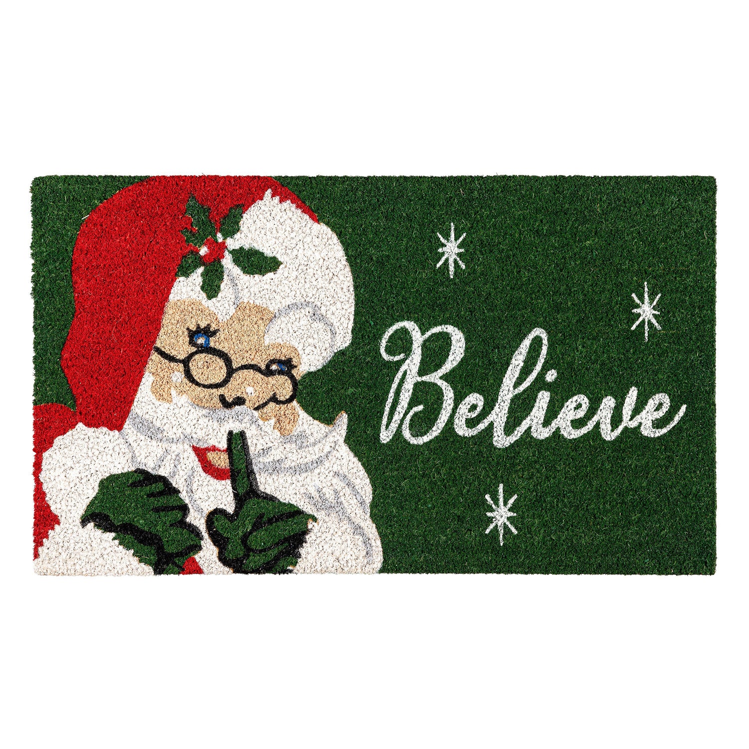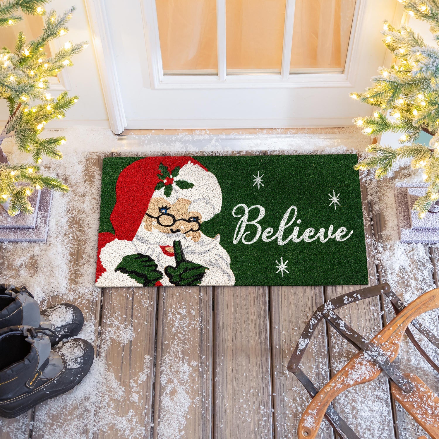Celebrate the season from the very first step with this festive winter mat. The cheerful design brings a warm and welcoming touch to entryways while adding texture and charm to any doorstep. Crafted from heat-sublimated polyester with a rubber backing, this versatile mat is designed to fit perfectly within Evergreen's switch doormat bases. The mildew resistant mat is ideal for indoor or outdoor use and features a skid-resistant backing to help keep it in place. This welcoming mat will freshen up your stoop season after season while ensuring your home stays debris-free. For stains, simply spot clean with soap and warm water.