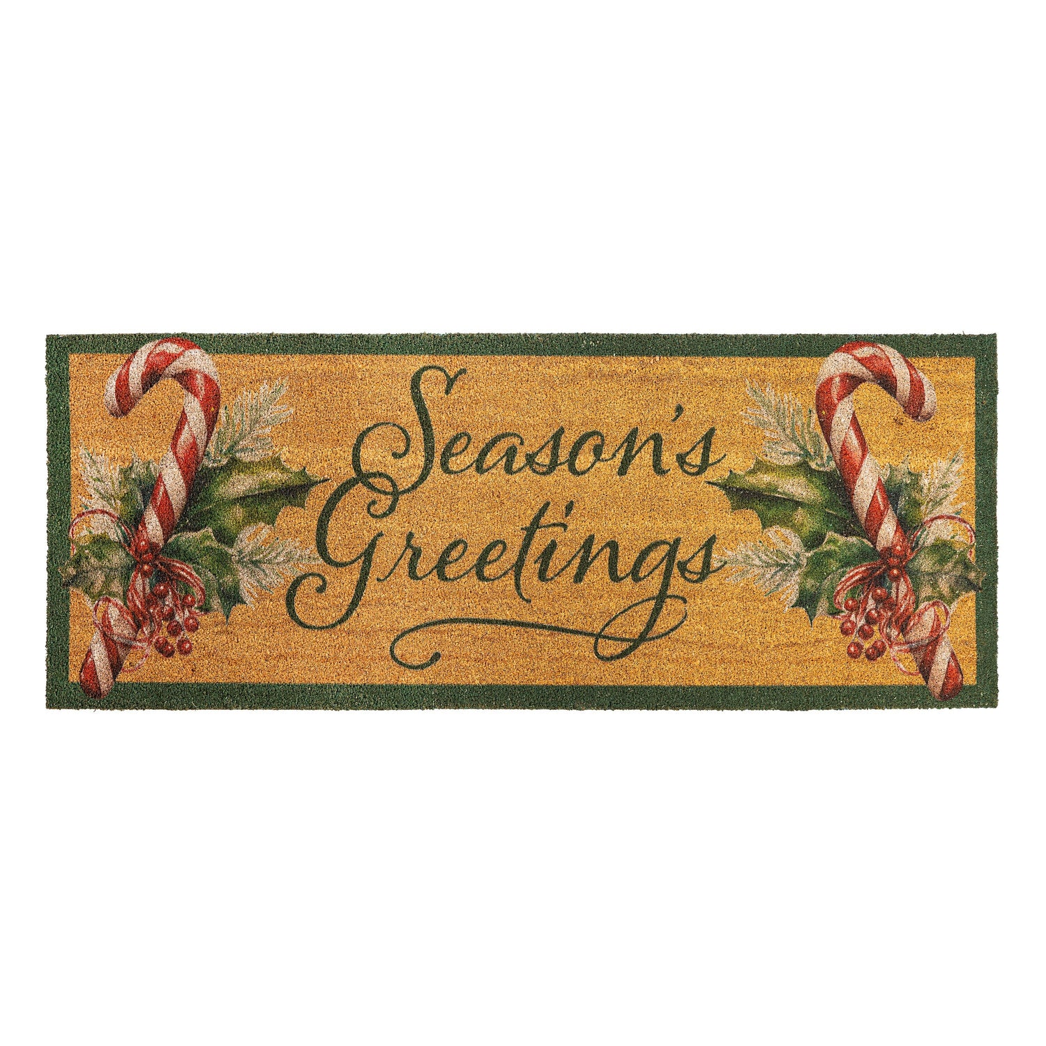 Celebrate the season from the very first step with this festive winter mat. The cheerful design brings a warm and welcoming touch to entryways while adding texture and charm to any doorstep. Crafted from heat-sublimated polyester with a rubber backing, this versatile mat is designed to fit perfectly within Evergreen's switch doormat bases. The mildew resistant mat is ideal for indoor or outdoor use and features a skid-resistant backing to help keep it in place. This welcoming mat will freshen up your stoop season after season while ensuring your home stays debris-free. For stains, simply spot clean with soap and warm water.