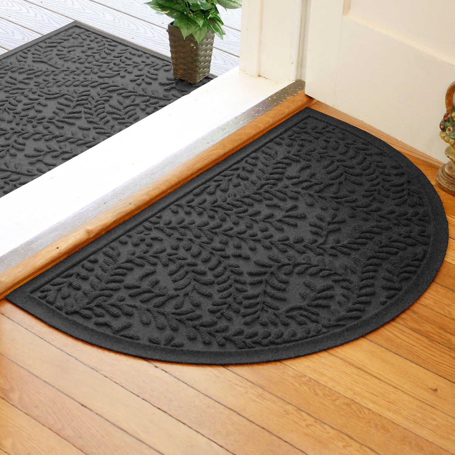 WaterHog® Indoor/Outdoor Leaves Half-Round Doormat, 24" x 39"