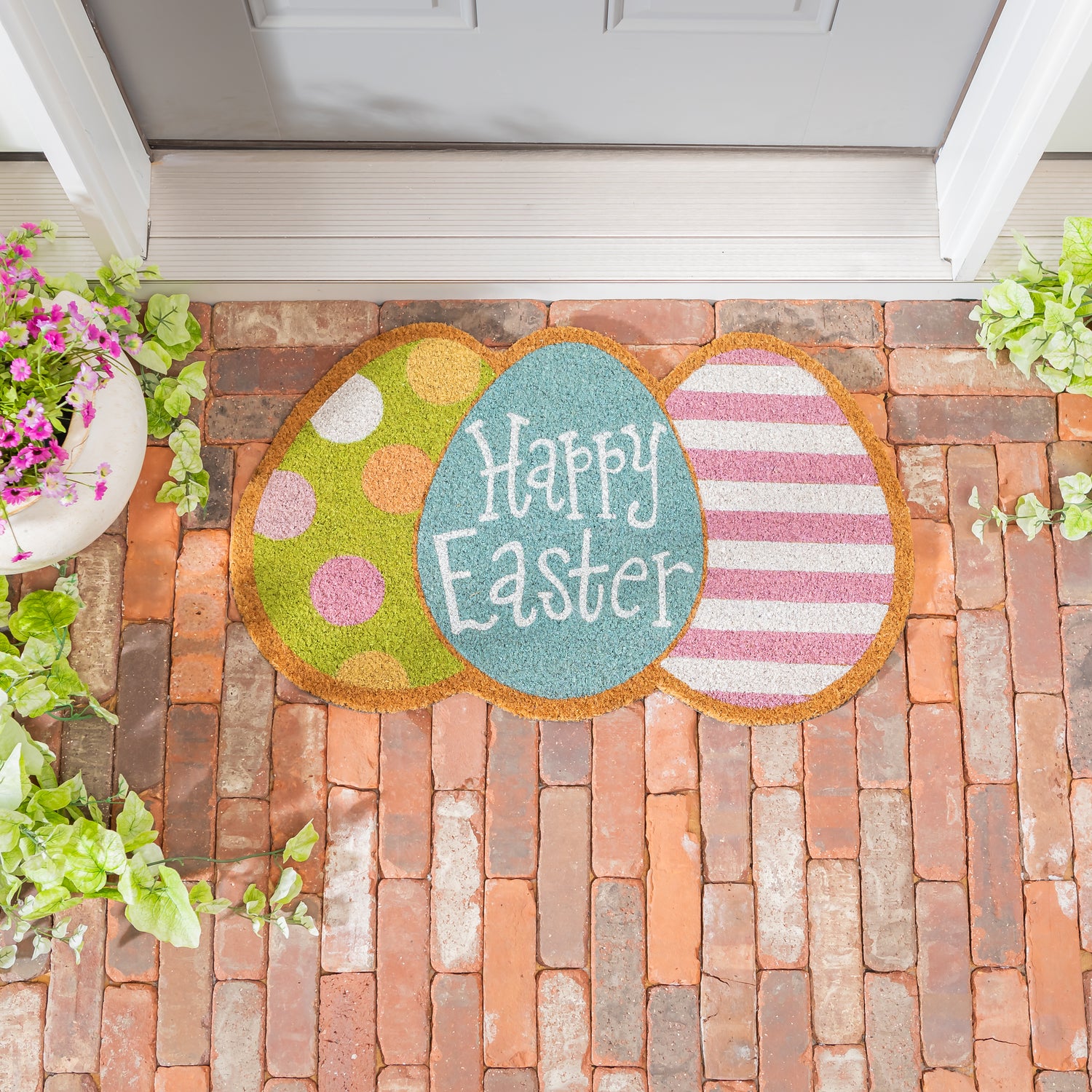 Bunny Blooms Easter Egg Shaped Coir Mat