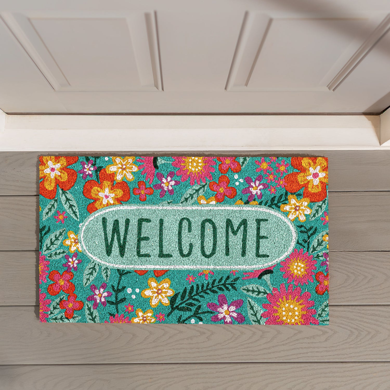 Sweep guests off their feet with our beautifully made coir mats! Made with vibrant pops of color that are perfect for the season, this mat will put pep in anyone's step. Crafted from coco husk fiber, the eye-catching mat is natural and eco-friendly. Ideal for high-traffic areas, the mat traps dirt and debris to prevent messes from being tracked into homes. Designs are printed directly on the mats with fade-resistant dyes. Since the mat is crafted from natural coir, some shedding is to be expected. Shake off excess fibers or use a soft brush to gently sweep.