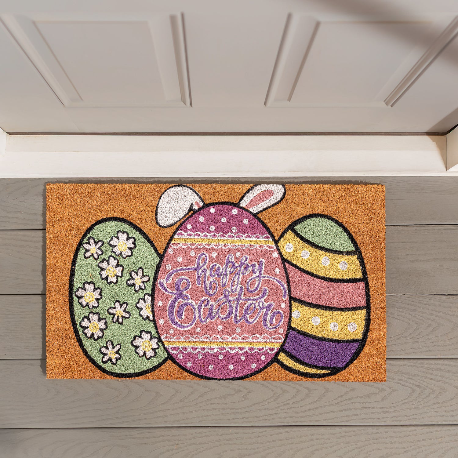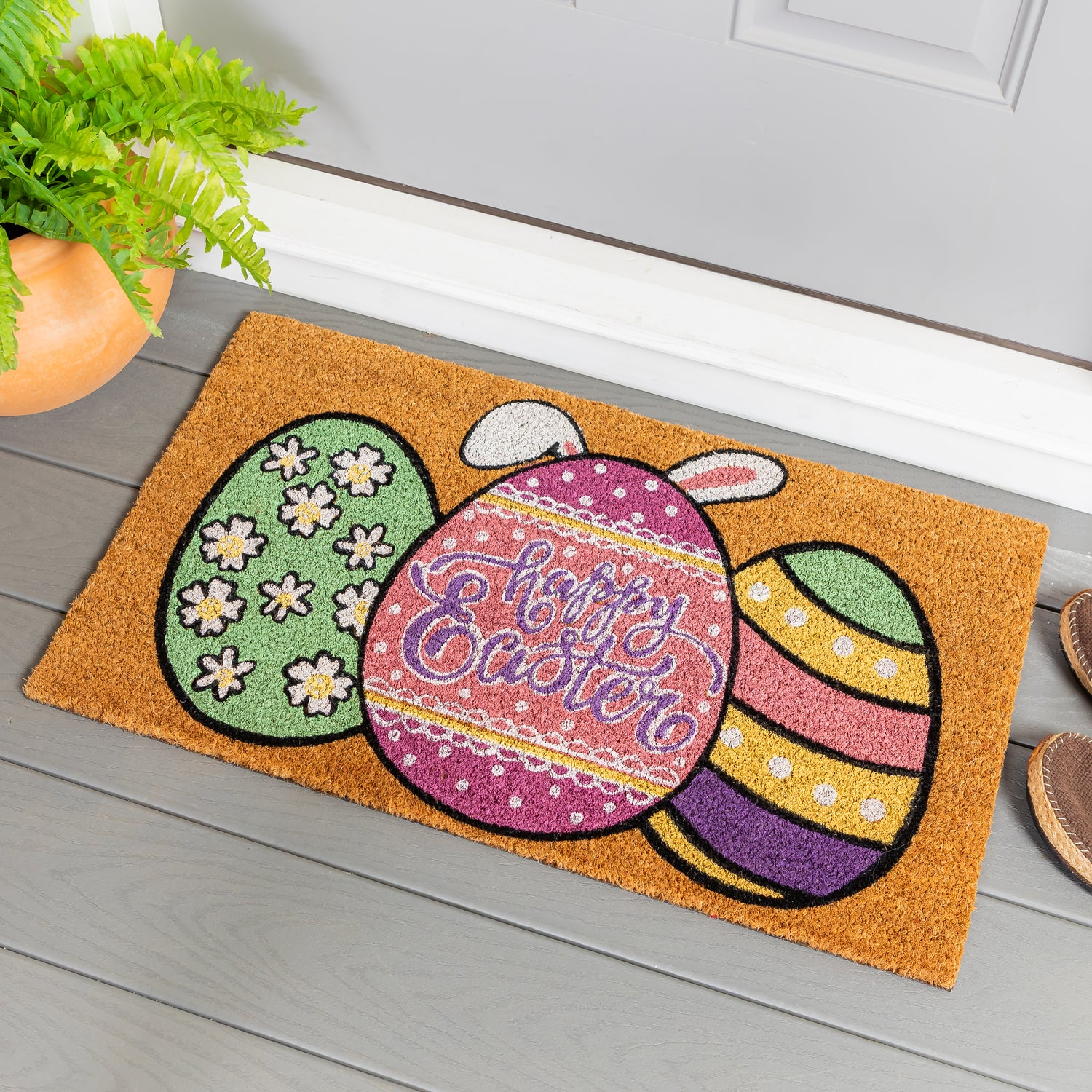 Sweep guests off their feet with our beautifully made coir mats! Made with vibrant pops of color that are perfect for the season, this mat will put pep in anyone's step. Crafted from coco husk fiber, the eye-catching mat is natural and eco-friendly. Ideal for high-traffic areas, the mat traps dirt and debris to prevent messes from being tracked into homes. Designs are printed directly on the mats with fade-resistant dyes. Since the mat is crafted from natural coir, some shedding is to be expected. Shake off excess fibers or use a soft brush to gently sweep.