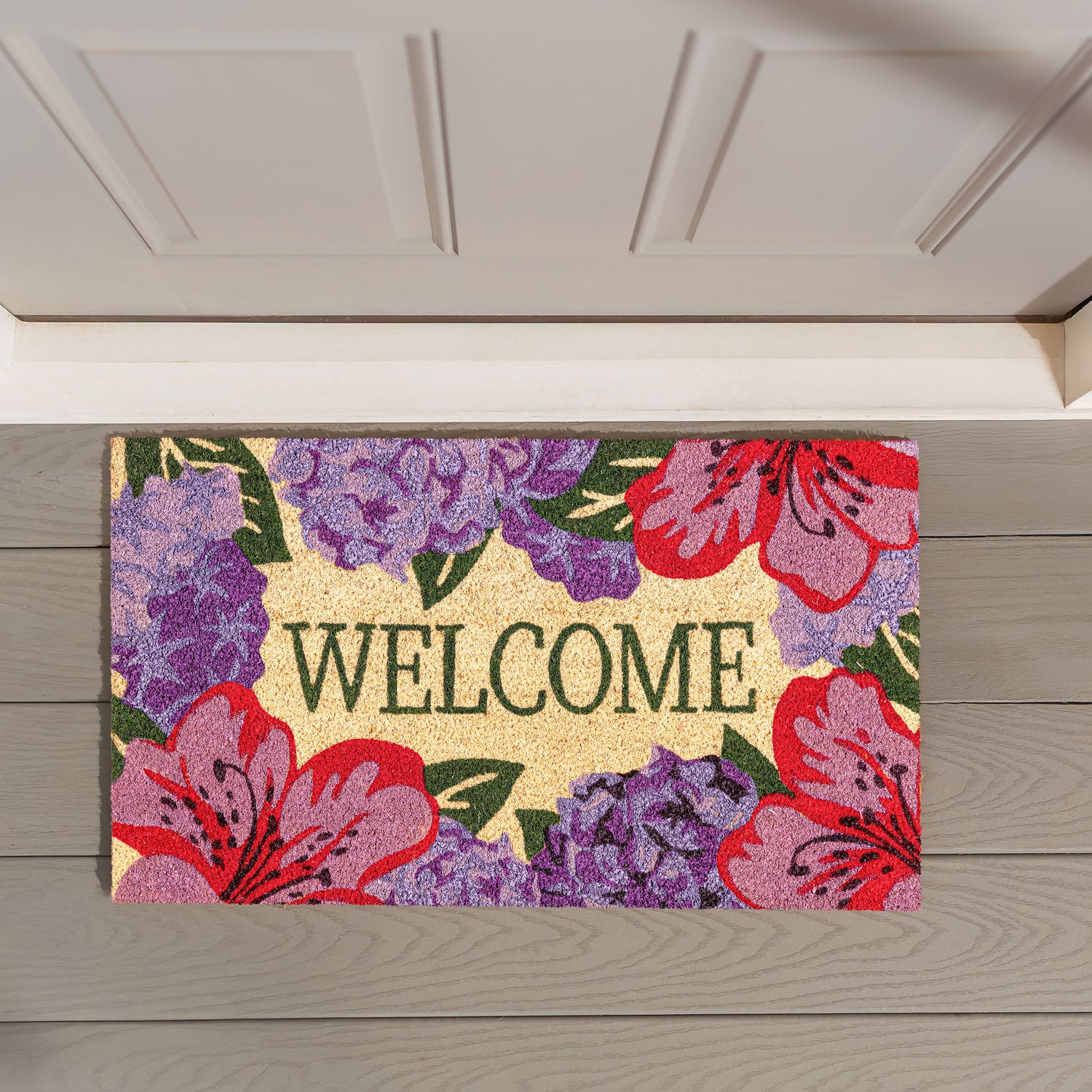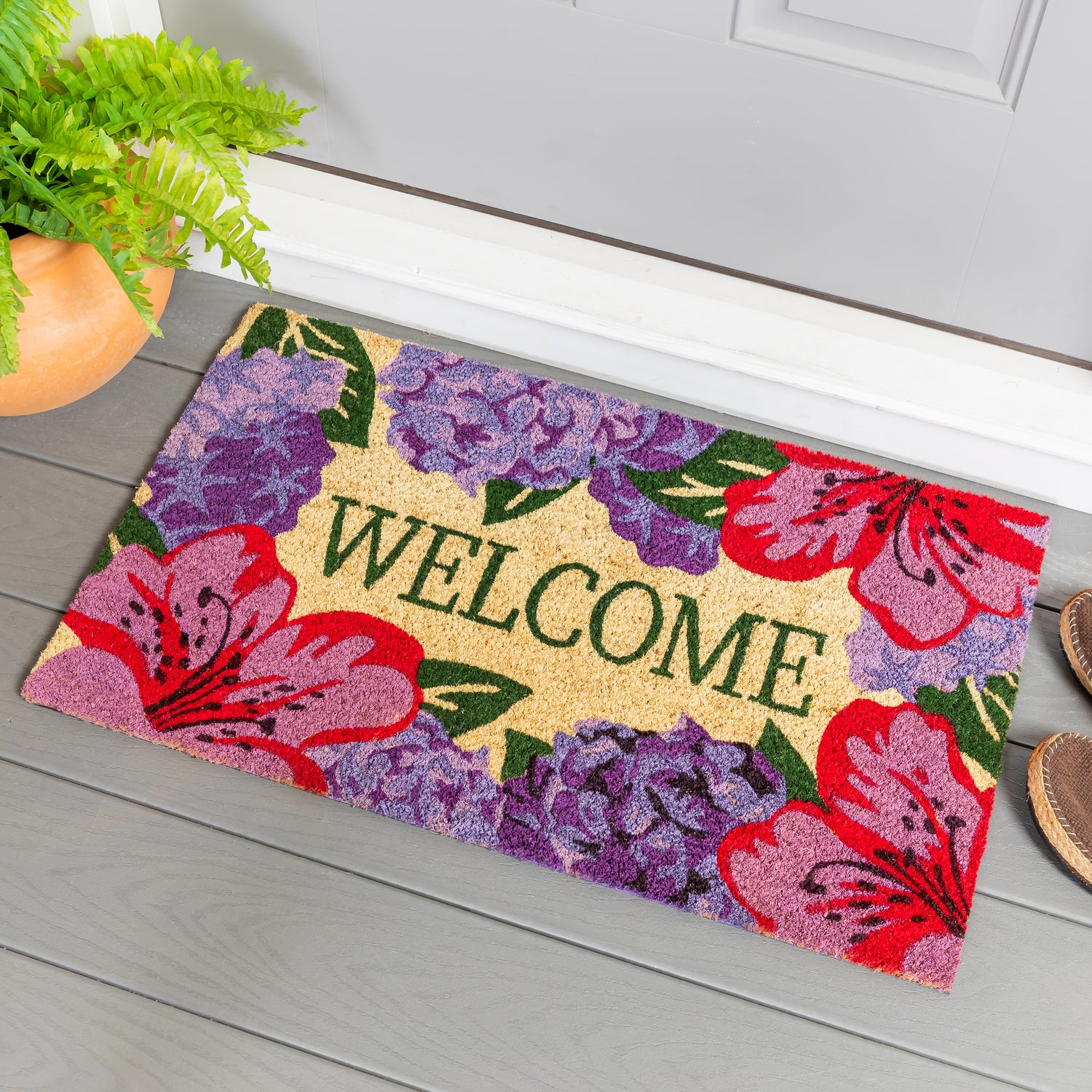 Sweep guests off their feet with our beautifully made coir mats! Made with vibrant pops of color that are perfect for the season, this mat will put pep in anyone's step. Crafted from coco husk fiber, the eye-catching mat is natural and eco-friendly. Ideal for high-traffic areas, the mat traps dirt and debris to prevent messes from being tracked into homes. Designs are printed directly on the mats with fade-resistant dyes. Since the mat is crafted from natural coir, some shedding is to be expected. Shake off excess fibers or use a soft brush to gently sweep.