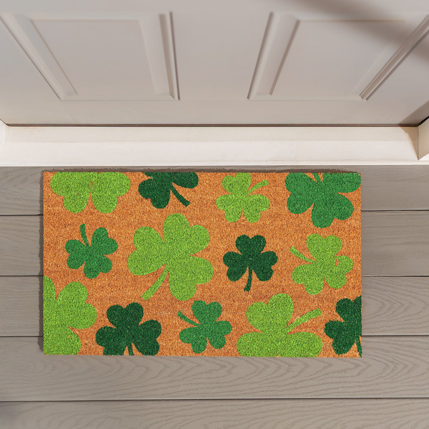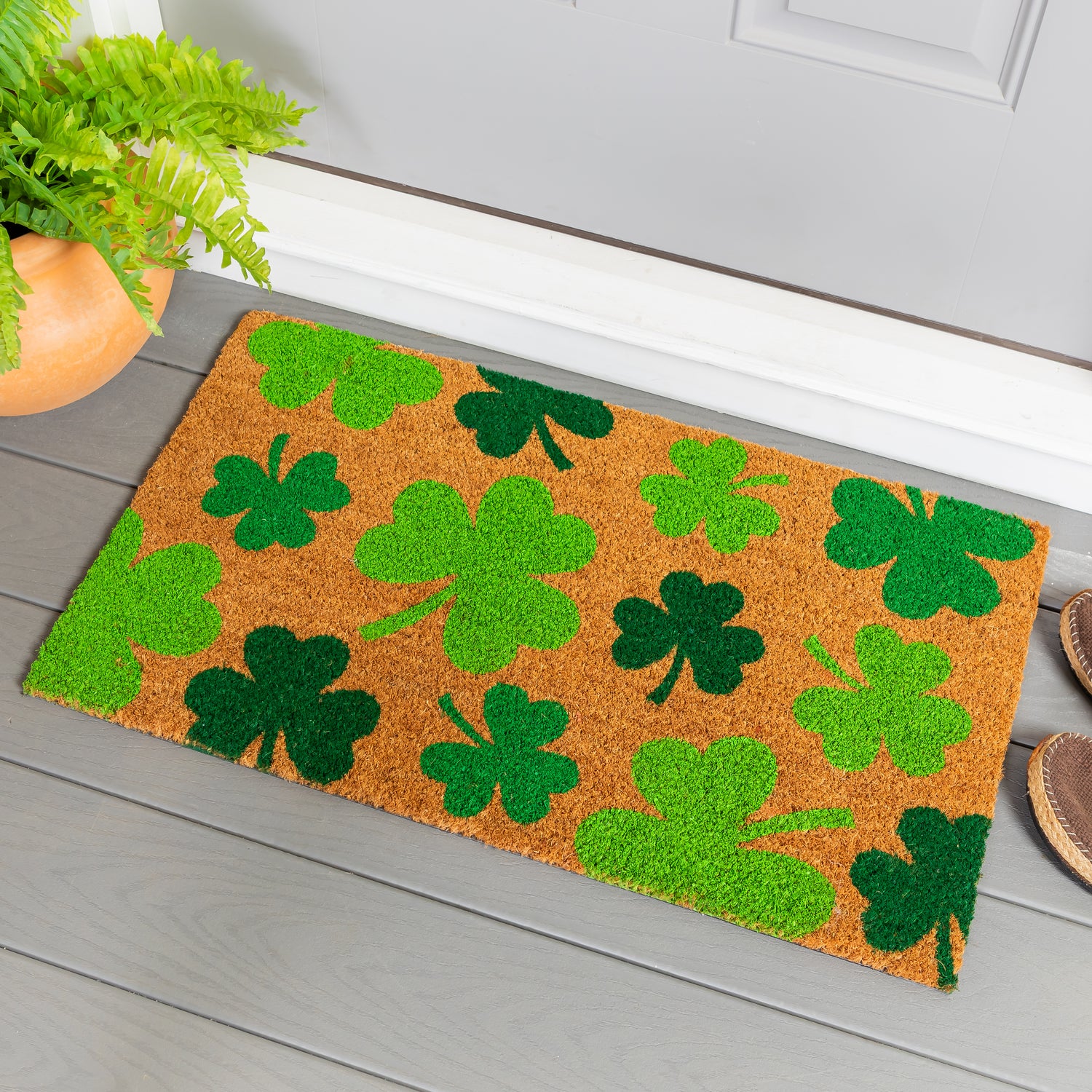 Sweep guests off their feet with our beautifully made coir mats! Made with vibrant pops of color that are perfect for the season, this mat will put pep in anyone's step. Crafted from coco husk fiber, the eye-catching mat is natural and eco-friendly. Ideal for high-traffic areas, the mat traps dirt and debris to prevent messes from being tracked into homes. Designs are printed directly on the mats with fade-resistant dyes. Since the mat is crafted from natural coir, some shedding is to be expected. Shake off excess fibers or use a soft brush to gently sweep.