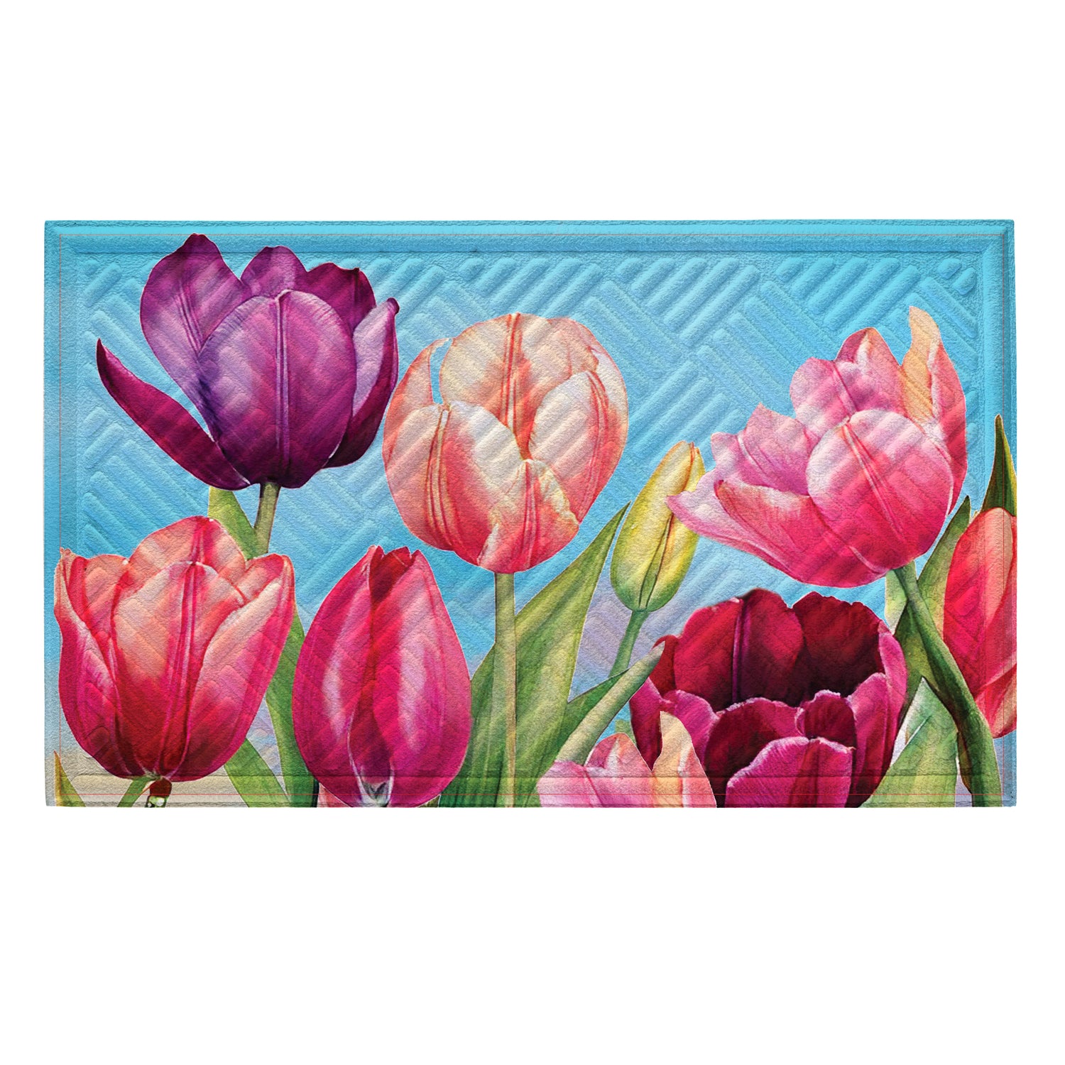 Sweep guests off their feet with our beautifully made embossed mats! Made with bright pops of color that are perfect for the season, this mat will put pep in anyone's step. Evergreen's embossed mats are crafted from outdoor-safe polypropylene and feature a rubber anti-slip backing. The embossed texture makes this mat more effective in trapping dirt, perfect for indoor or outdoor use. Place it in a high-traffic area to keep debris out of the home.