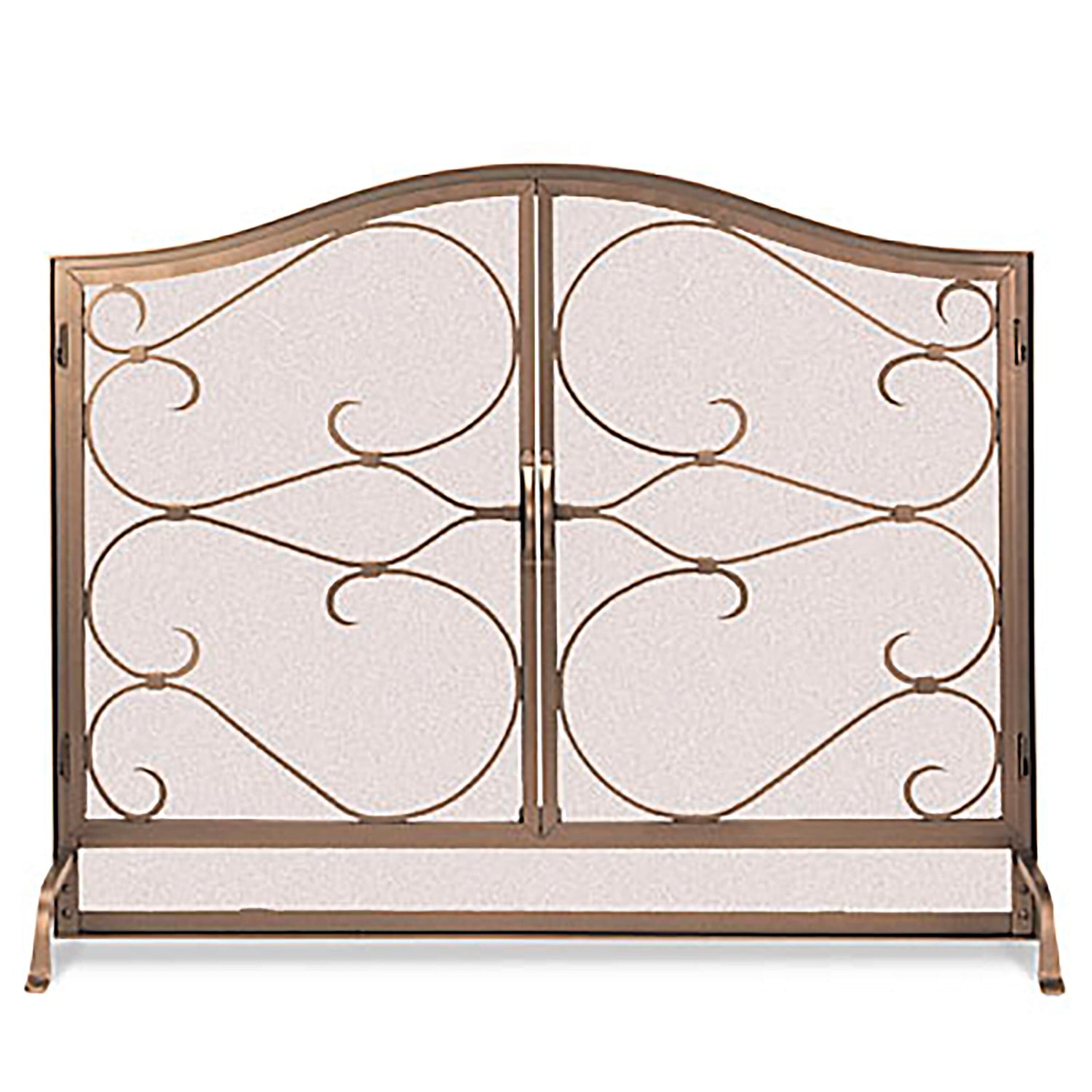 Style and function come together in this beautifully crafted hearth screen. The handsome scrollwork and arched doors lend lightness to the overall design, while the hinged doors make fire-tending easy and safe.