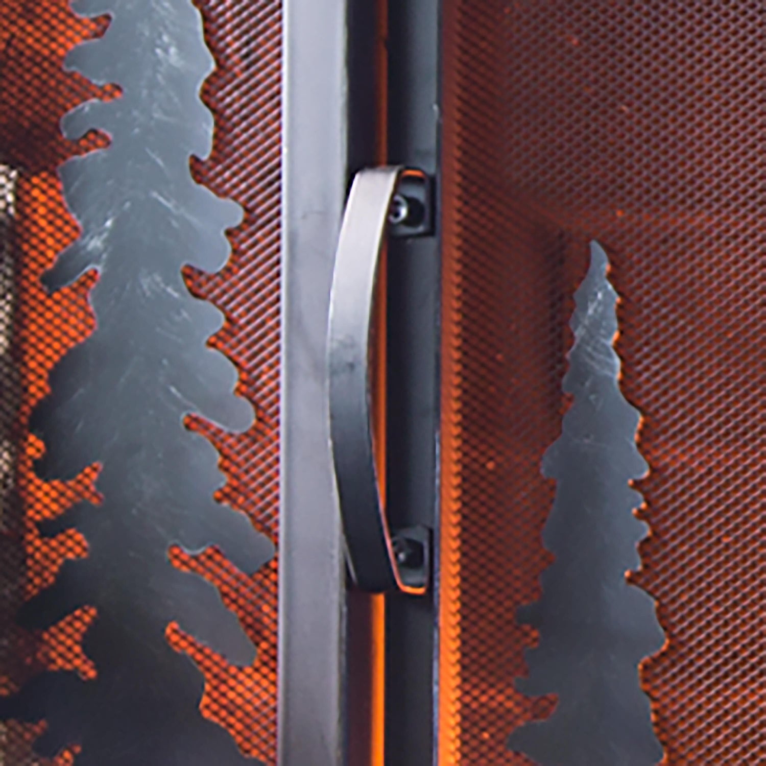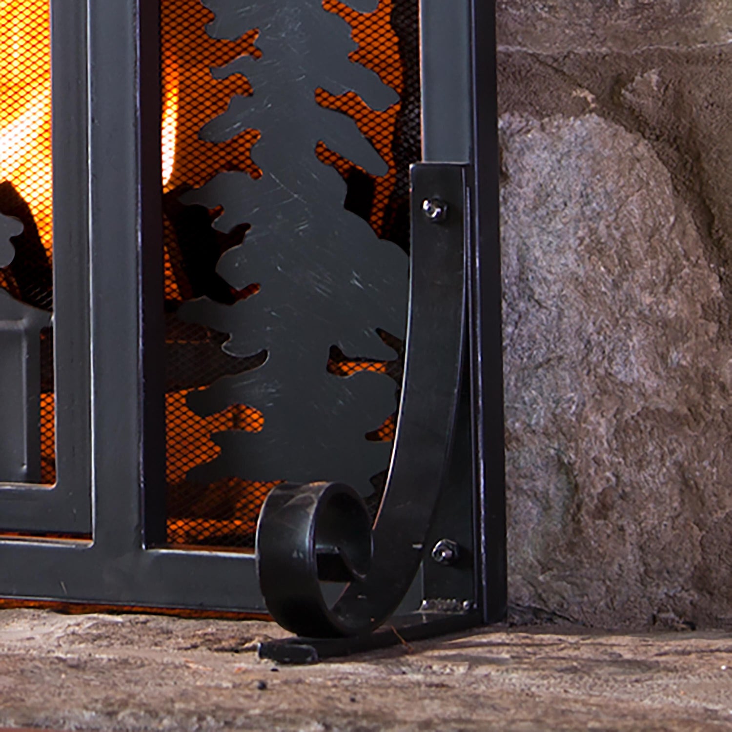 Multipane windows and an inviting front porch on the cabin make this fire screen extra welcoming; the multi-step, hand-applied finish gives it even more style. Best of all, a single, extra-wide door with handle and magnetic closure makes fire tending easy and safe. Laser cut and beveled design for 3D look. Screen includes two back legs that can change position along the bottom (simply slide and tighten).