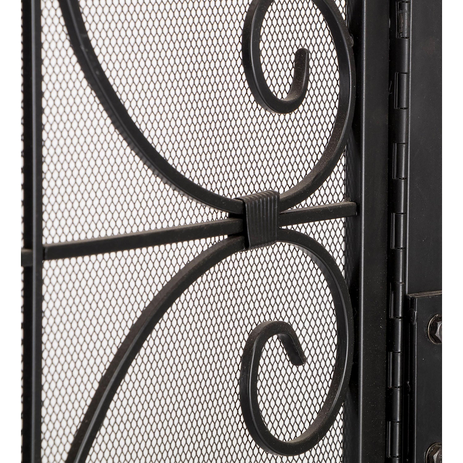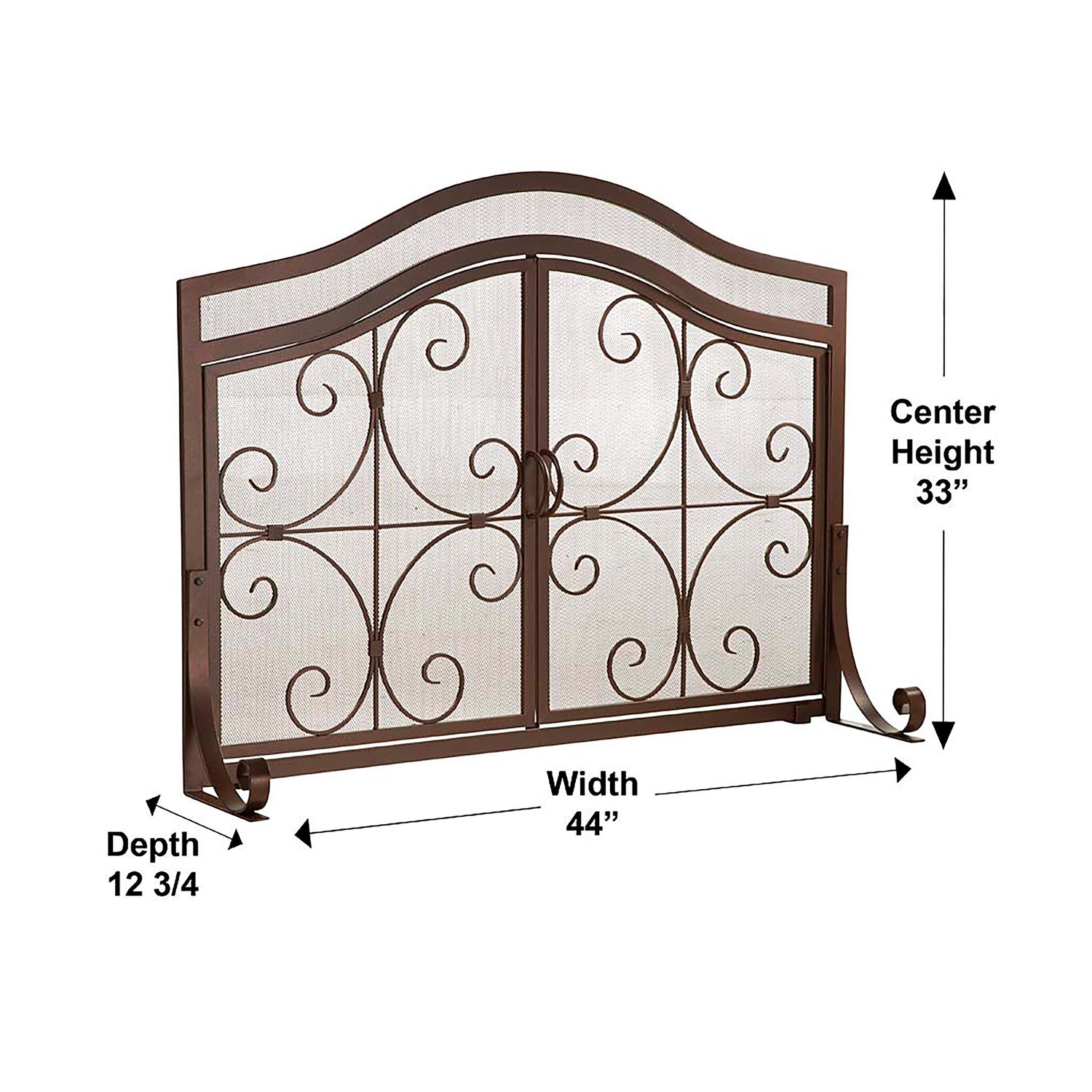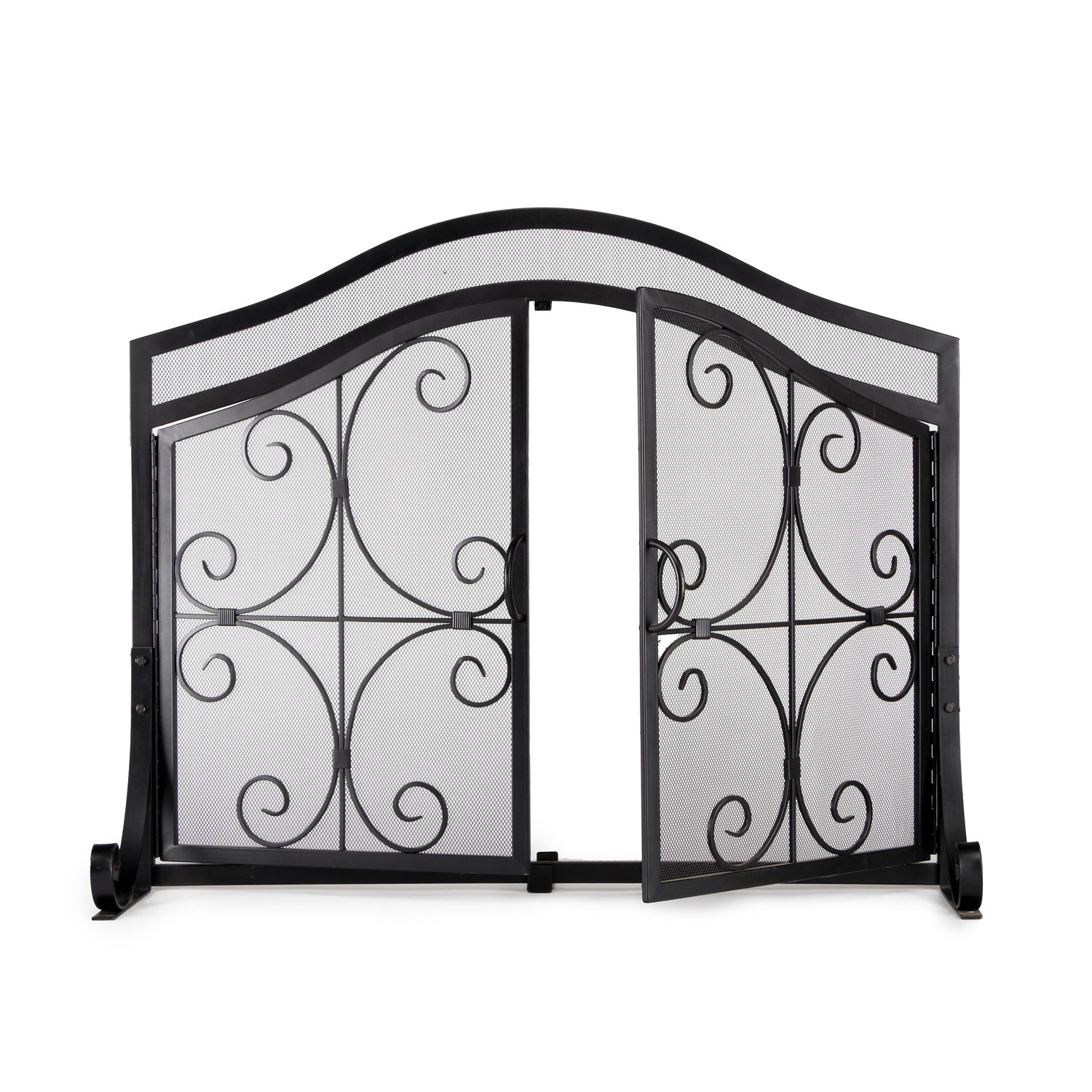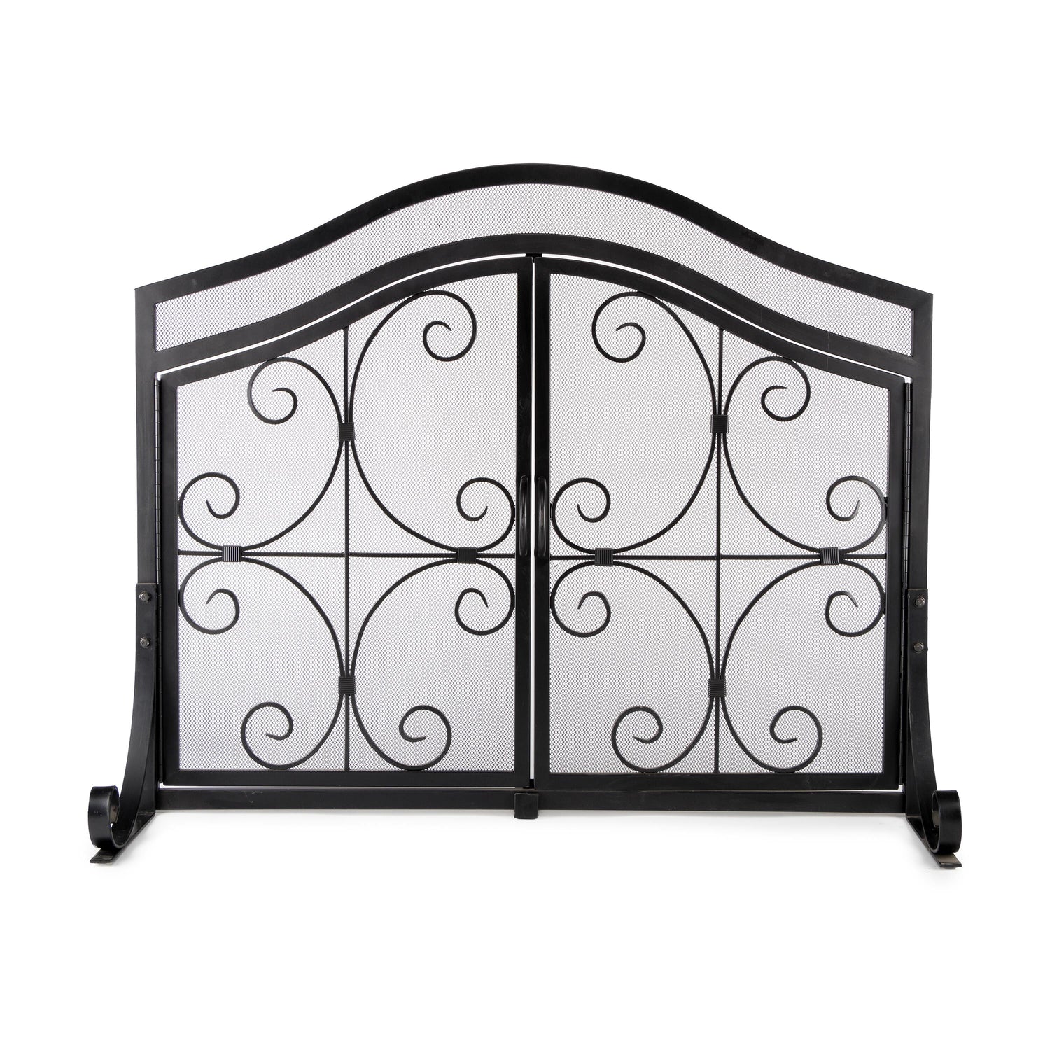 Ornamental scrollwork in solid wrought iron sets our exclusive Crest Fireplace Screen With Doors apart.