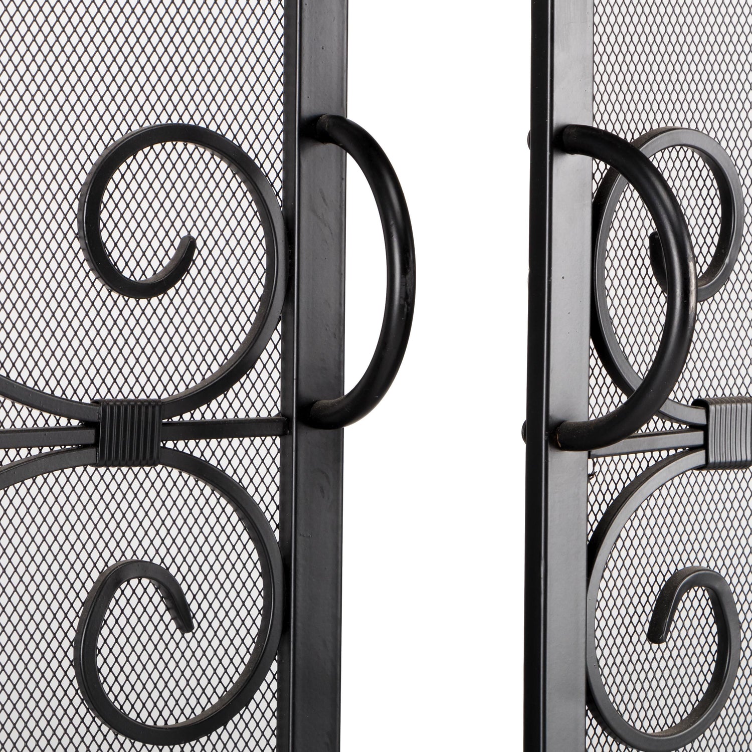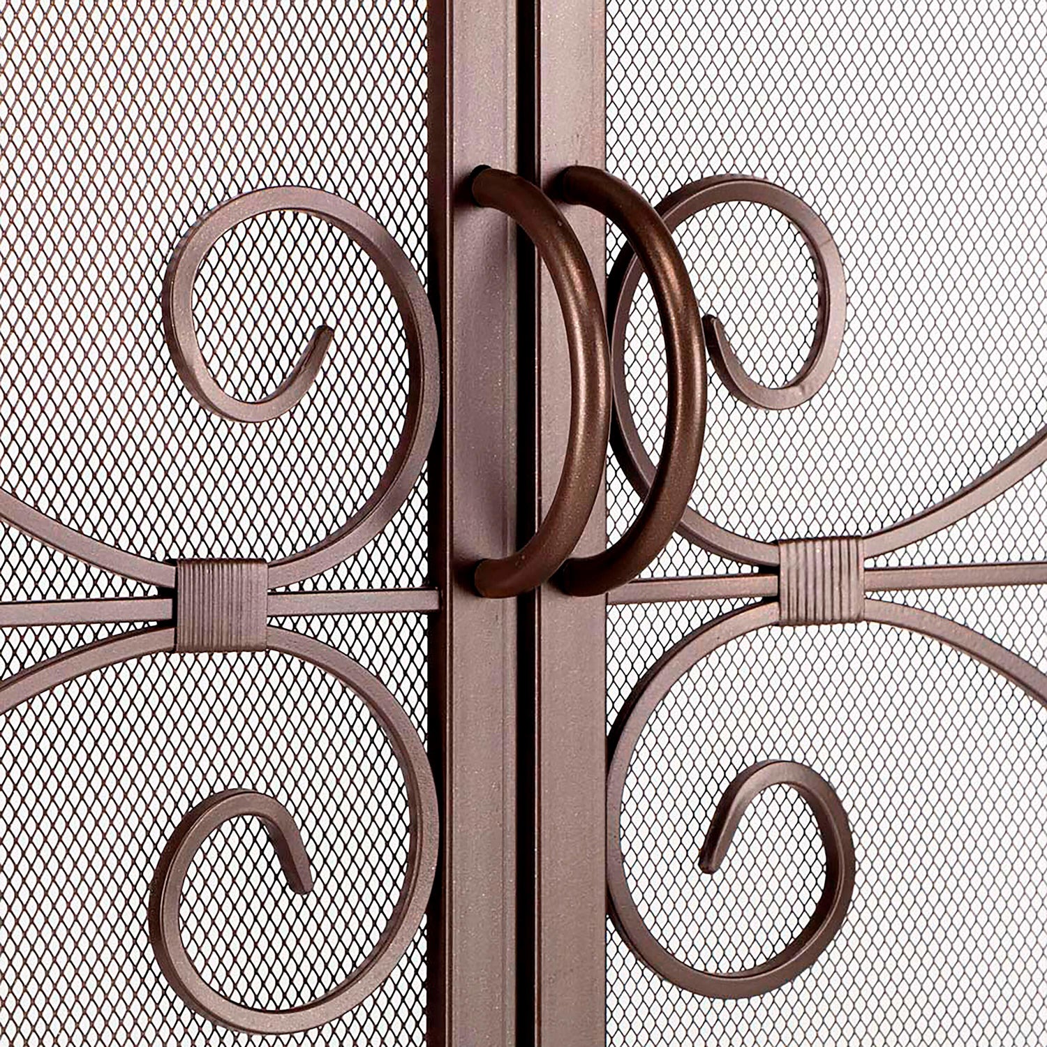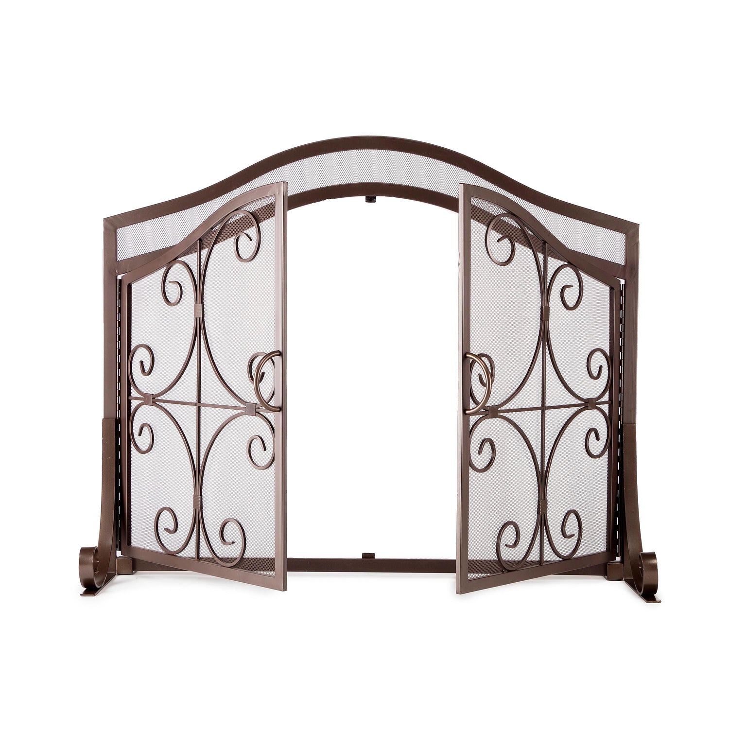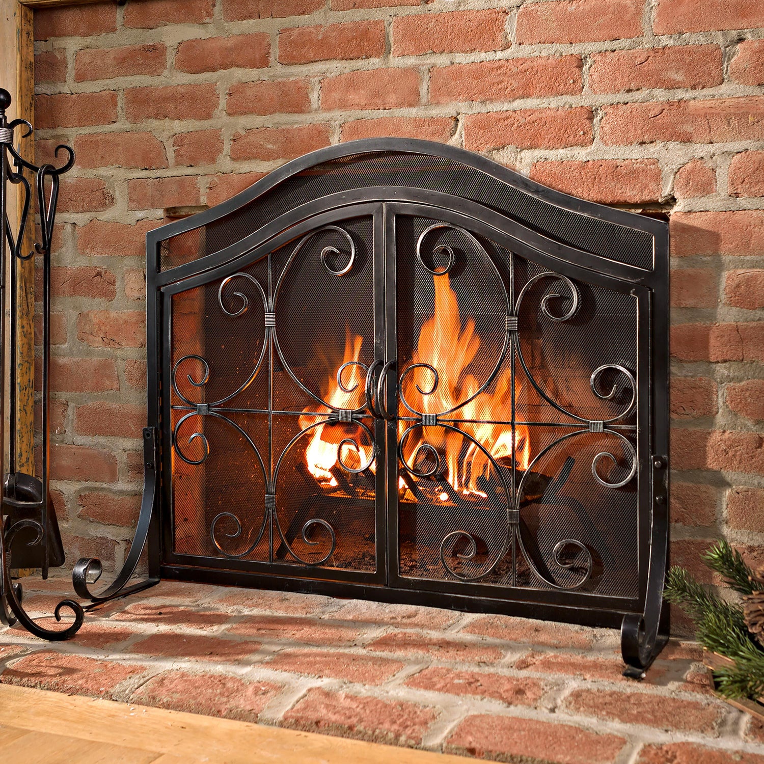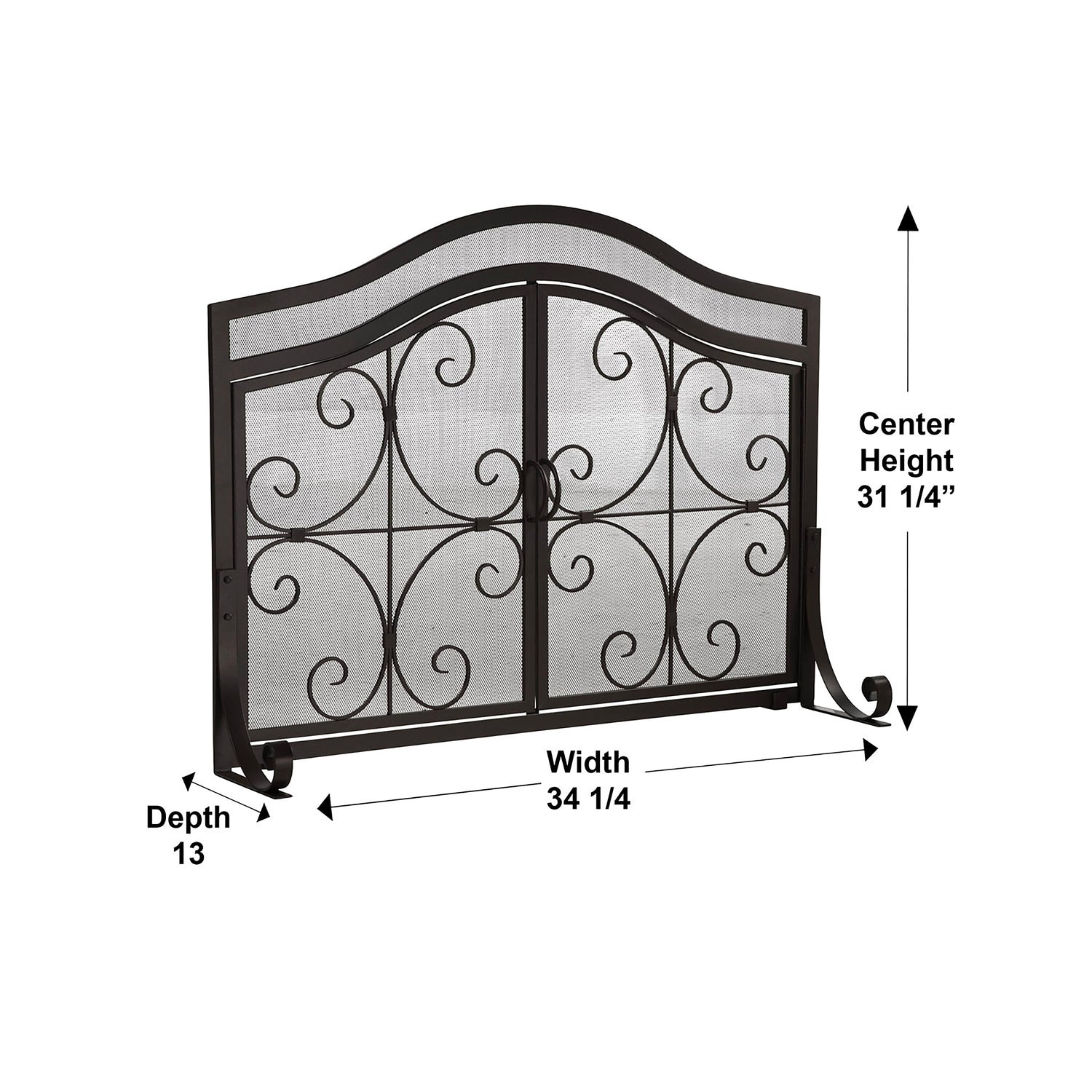Ornamental scrollwork in solid wrought iron sets our exclusive Crest Fireplace Screen With Doors apart.