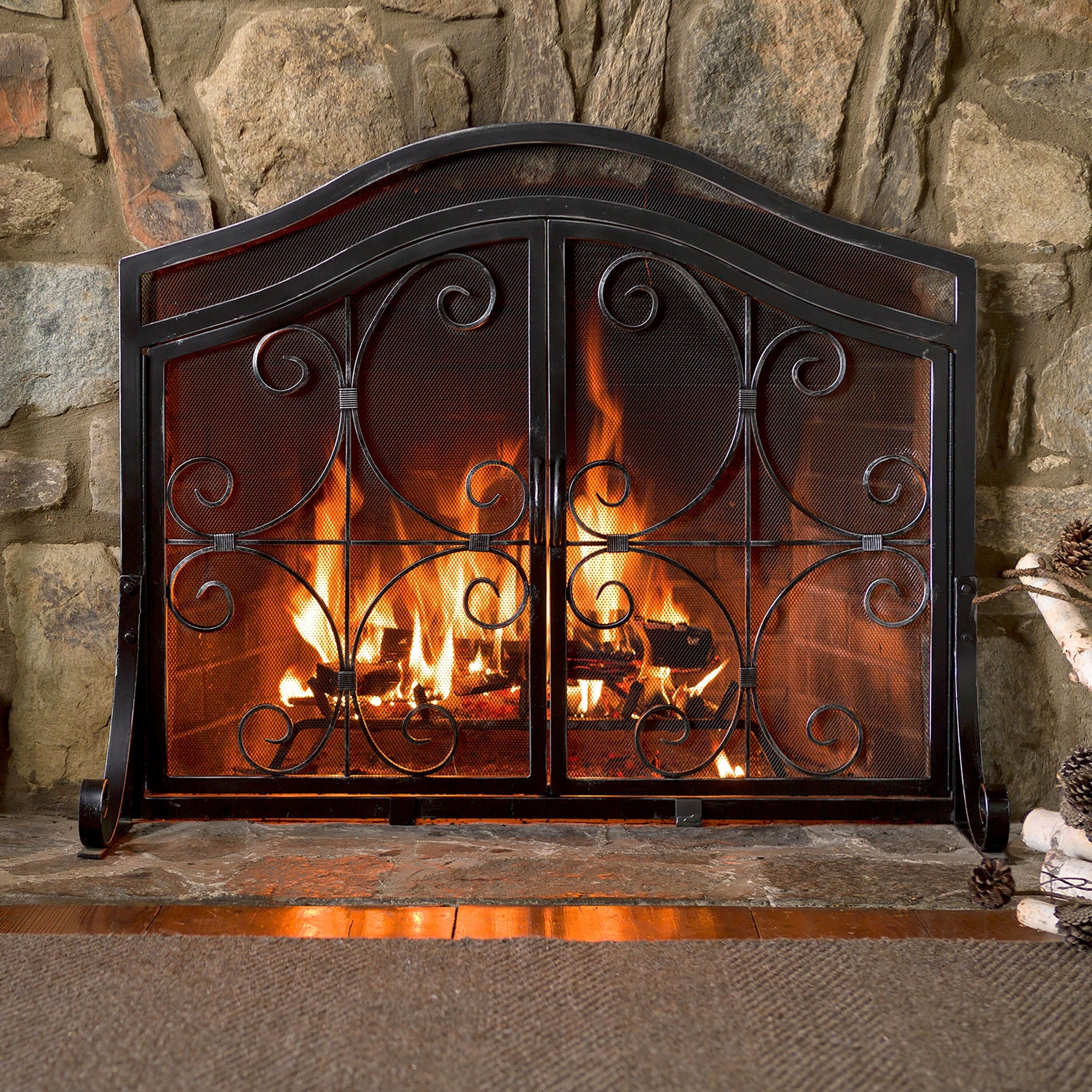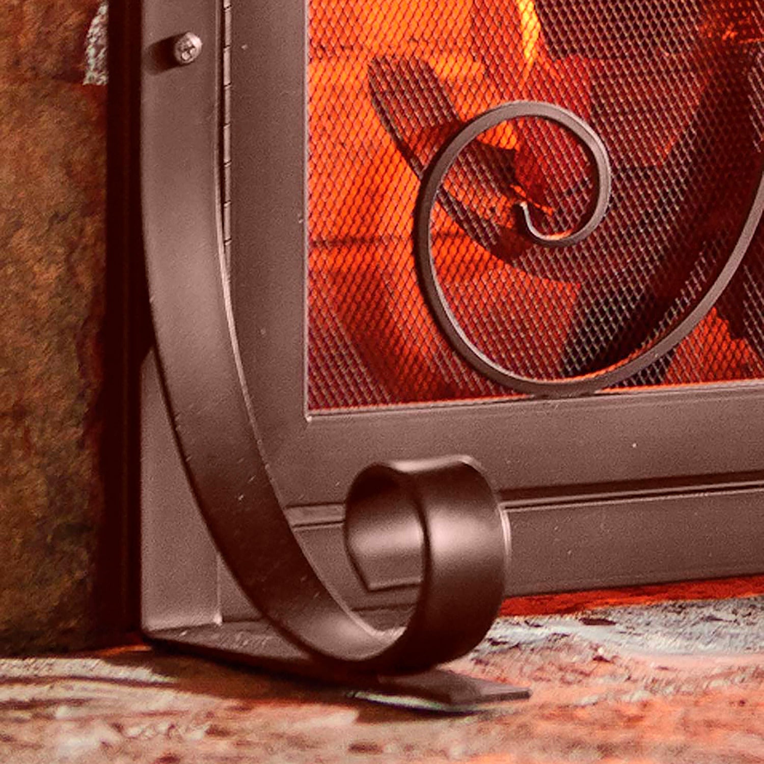 - Ornamental scrollwork design adds style to your hearth