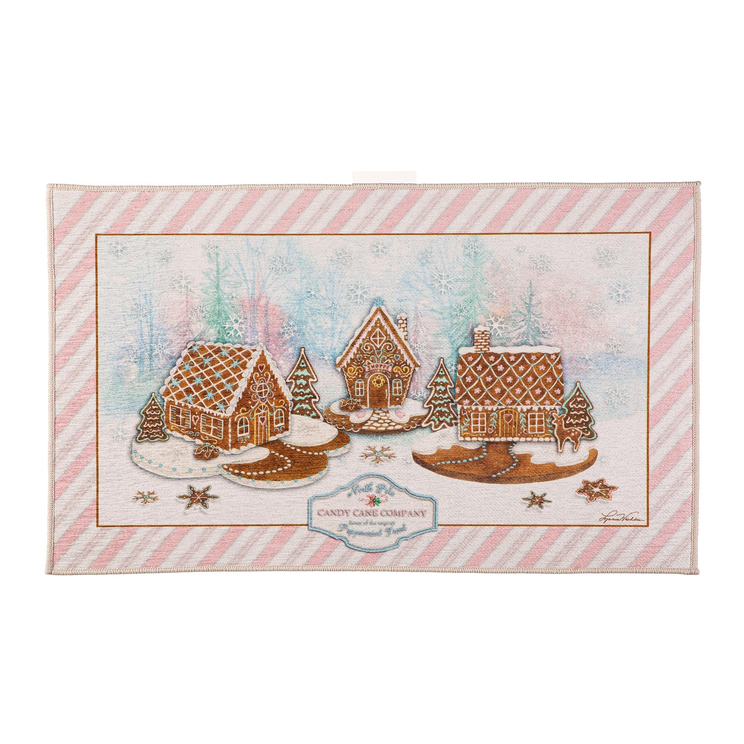 Welcome everyone from family to Santa Claus himself to the home with this indoor/outdoor mat. It features a gingerbread house village with snowflake accents and a colorful, forest background. The red and white striped border adds a charming touch to this piece. This eye-catching mat is made from durable materials. Ideal for high traffic areas, it traps dirt and debris to prevent messes from being tracked into homes. It’s weatherproof so it’s perfect for use indoors or outdoors.