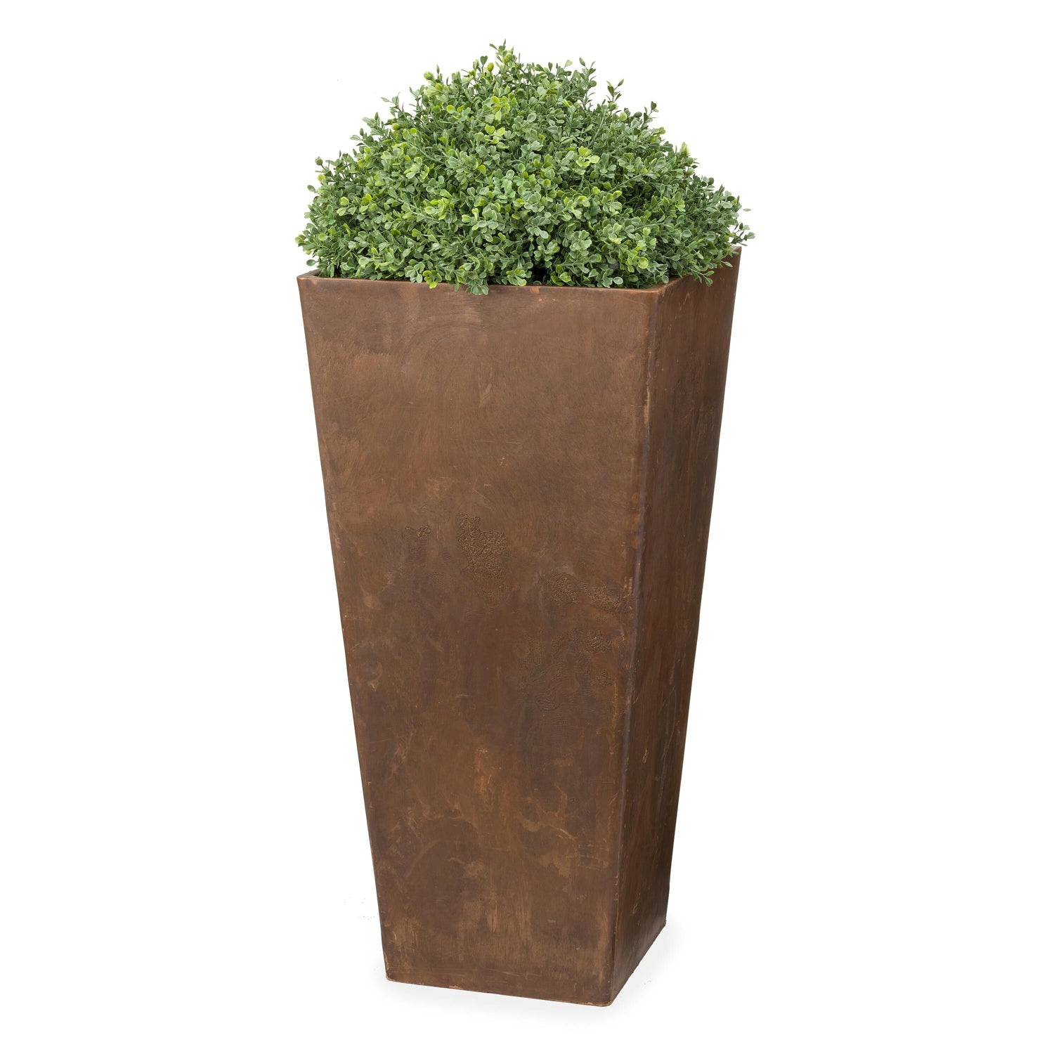 Frost-proof, four-season resin composite planters have the look of copper and are practical and durable, for use indoors and out.