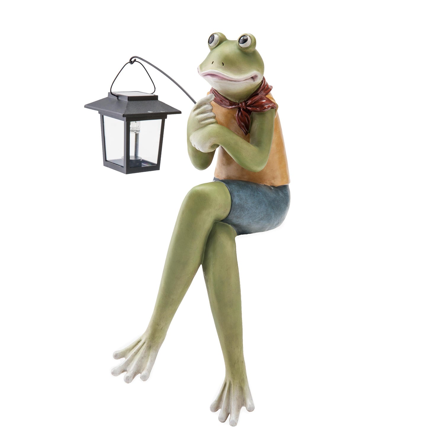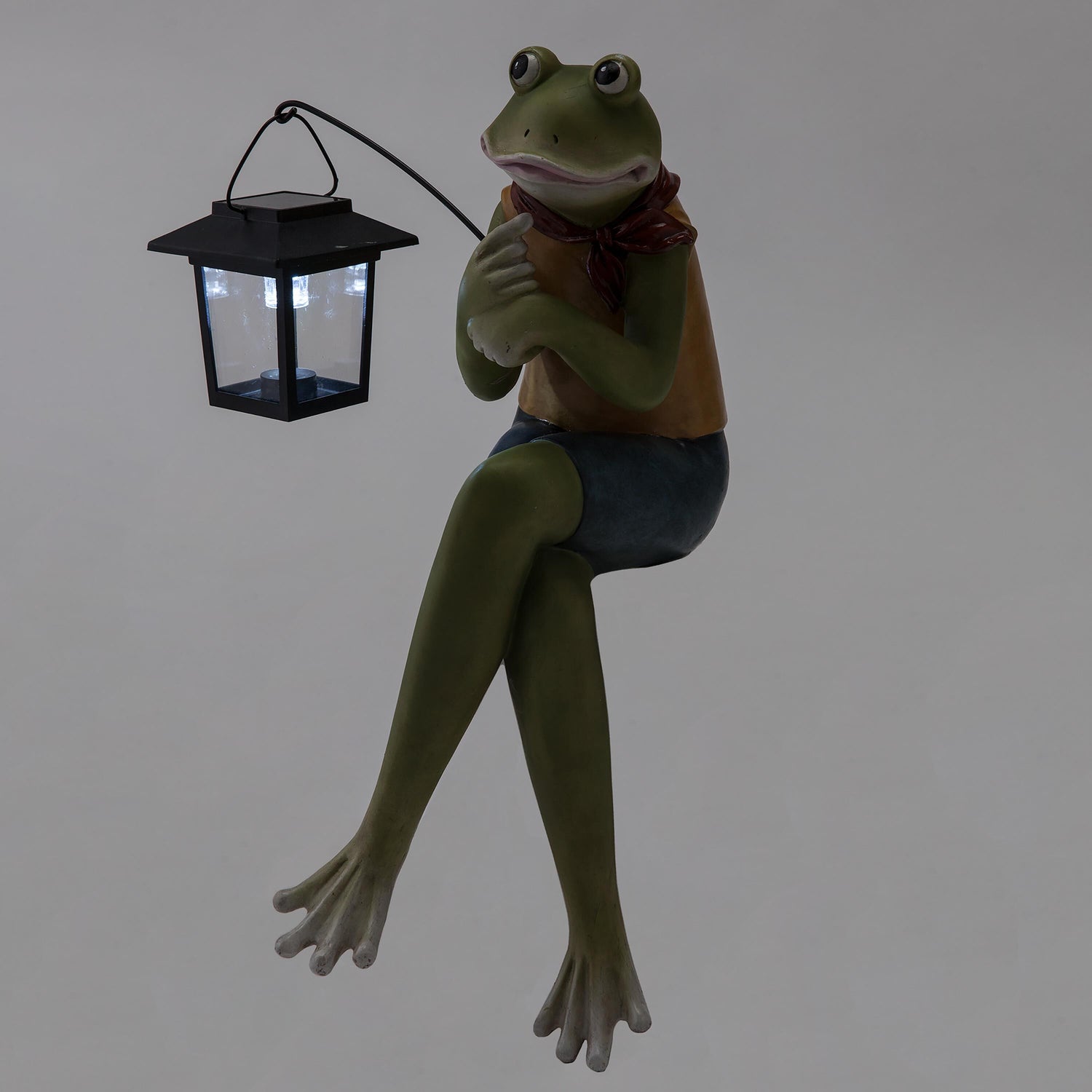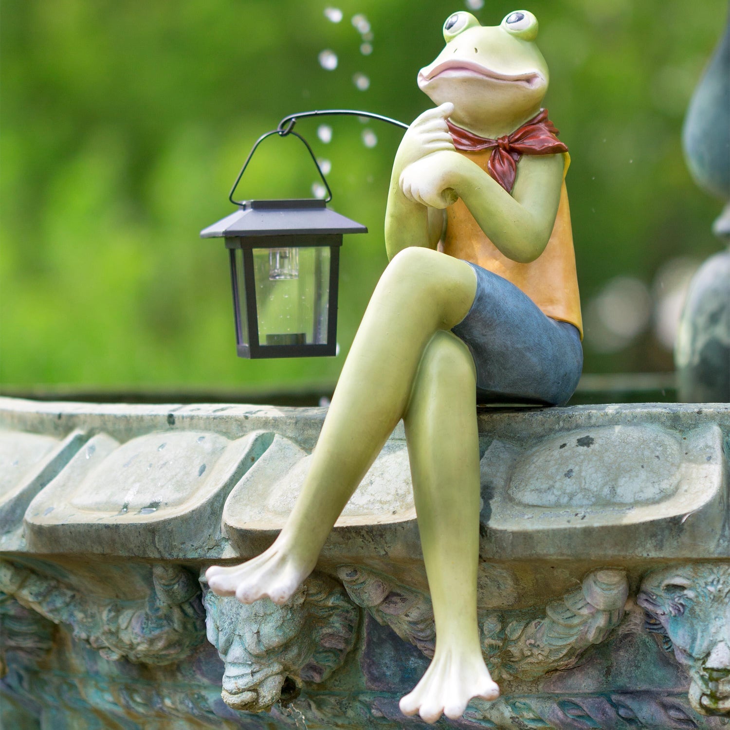 Indoor/Outdoor Sitting Frog Sculpture with Solar Lantern