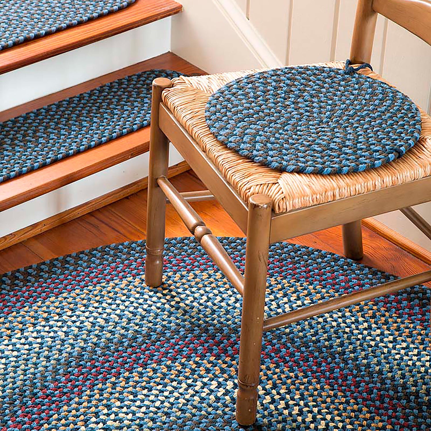 Add the coordinating Stair Treads and Chair Pads for a great look in dining room, kitchen, hallway and more. Made with pride in the USA by Rhody Rugs, a family run company.