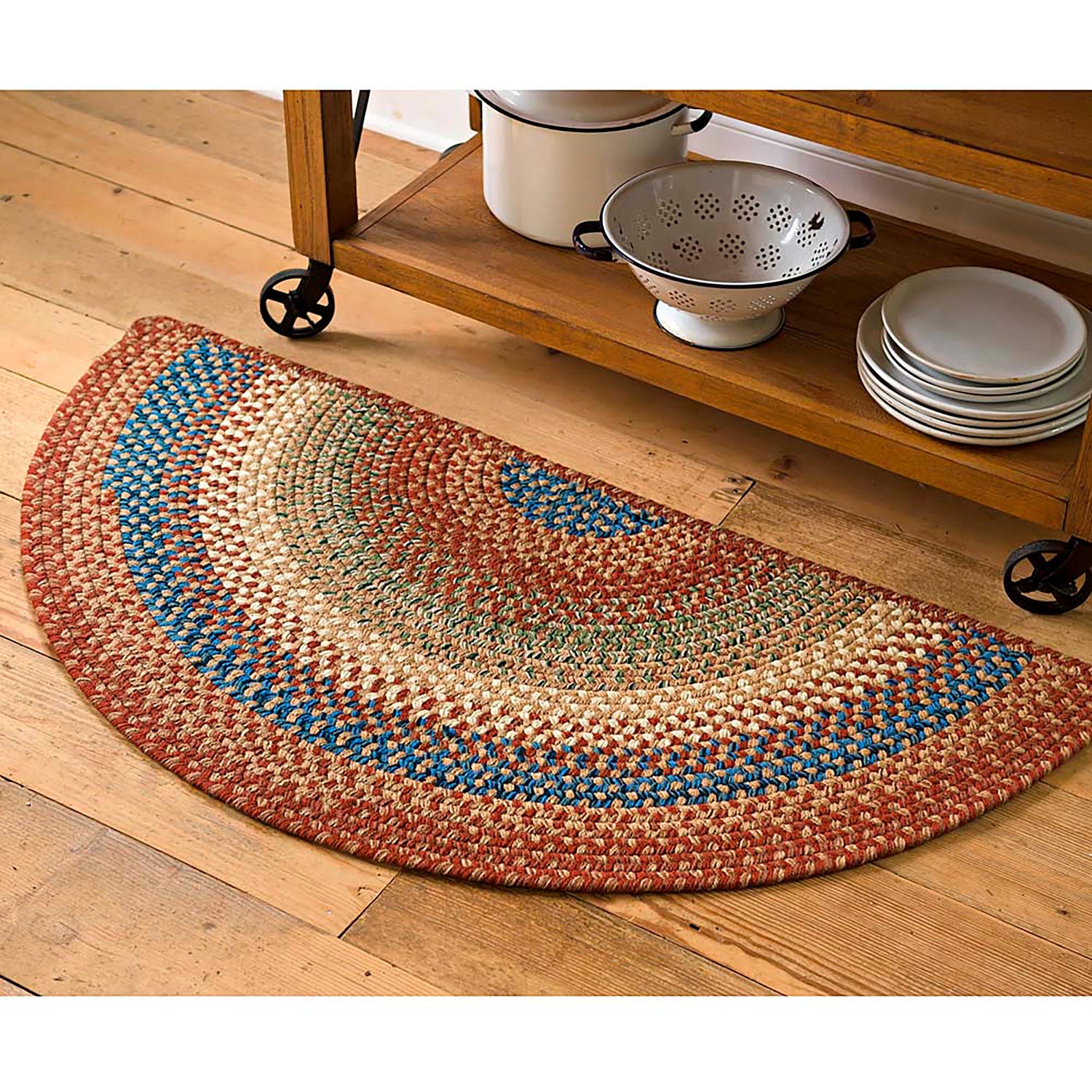 Crafted in New England in true colonial style, our Roanoke Braided Half Round Rug is flat braided using texturized polypropylene yarns, which create a wool-like finish and make the rug stronger and more flexible.