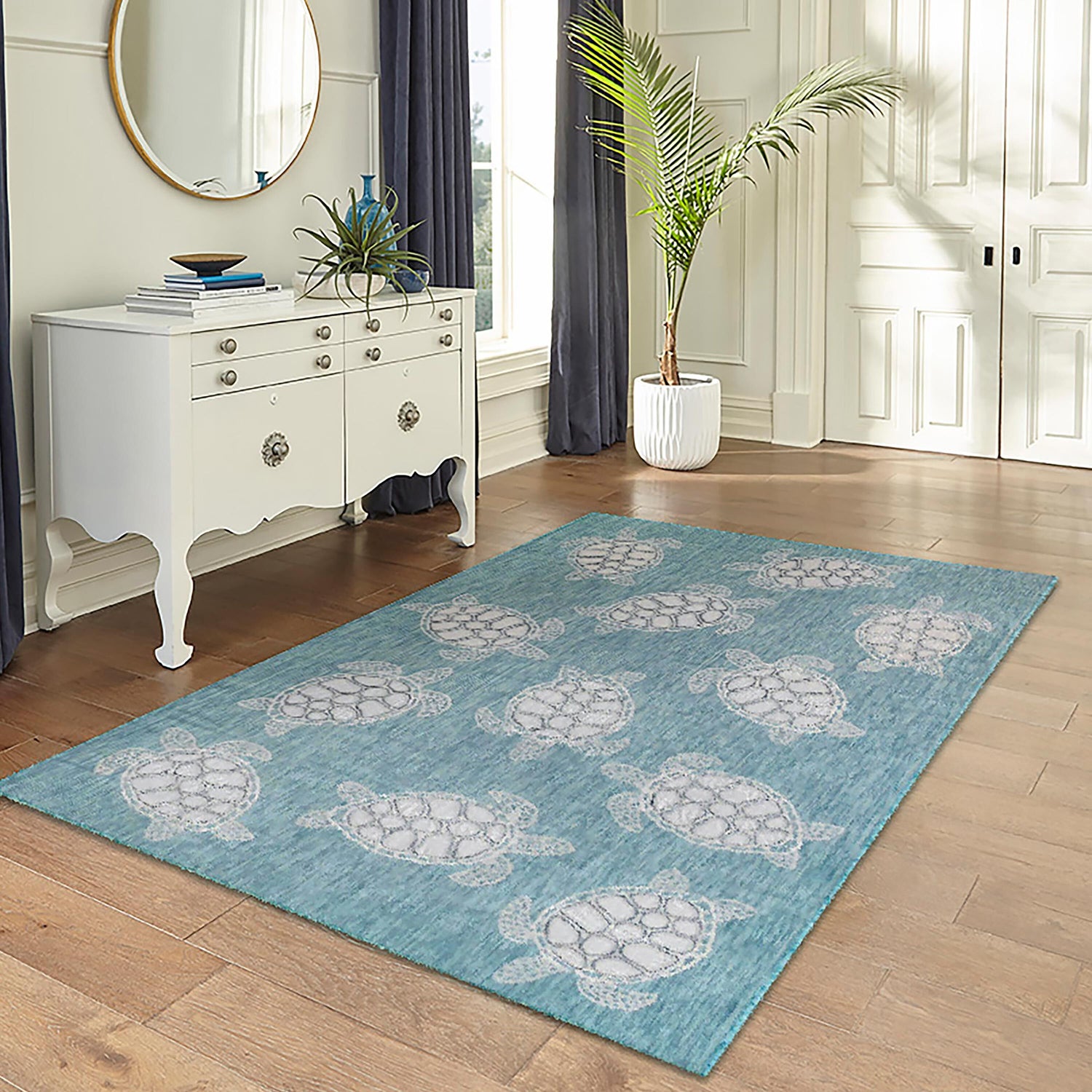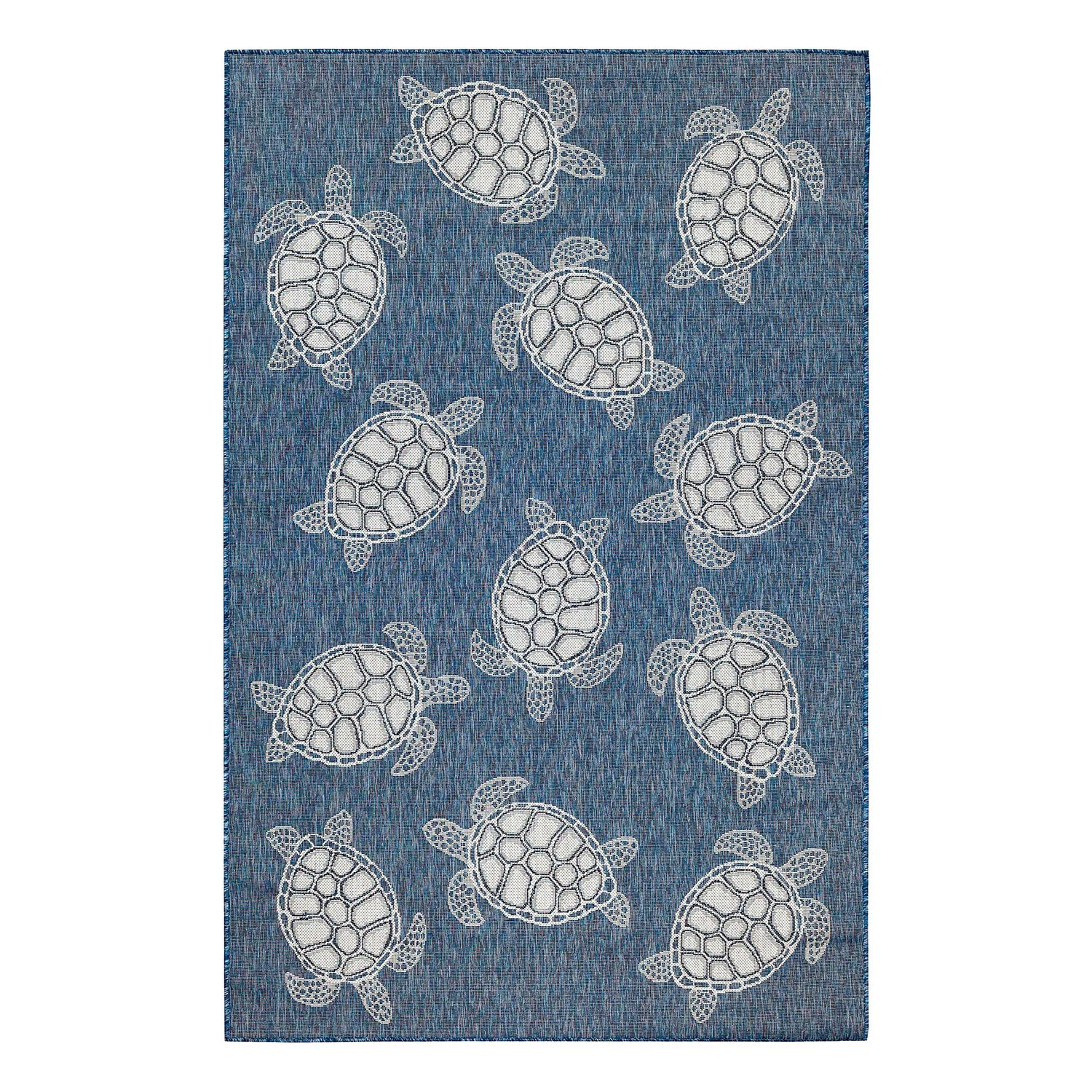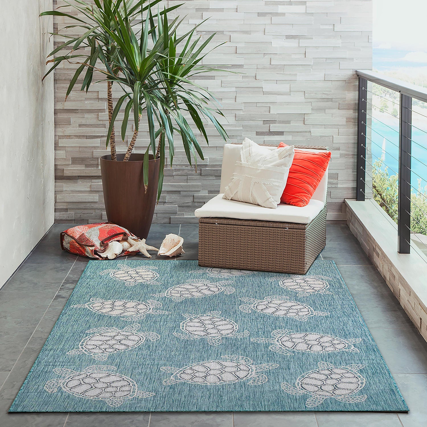 Indoor/Outdoor Textured Sea Turtles Polypropylene Rug, 39" x 59"