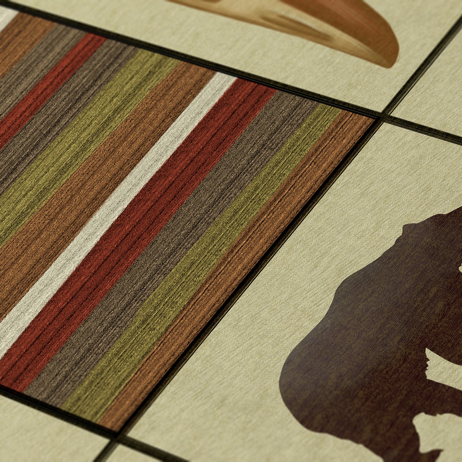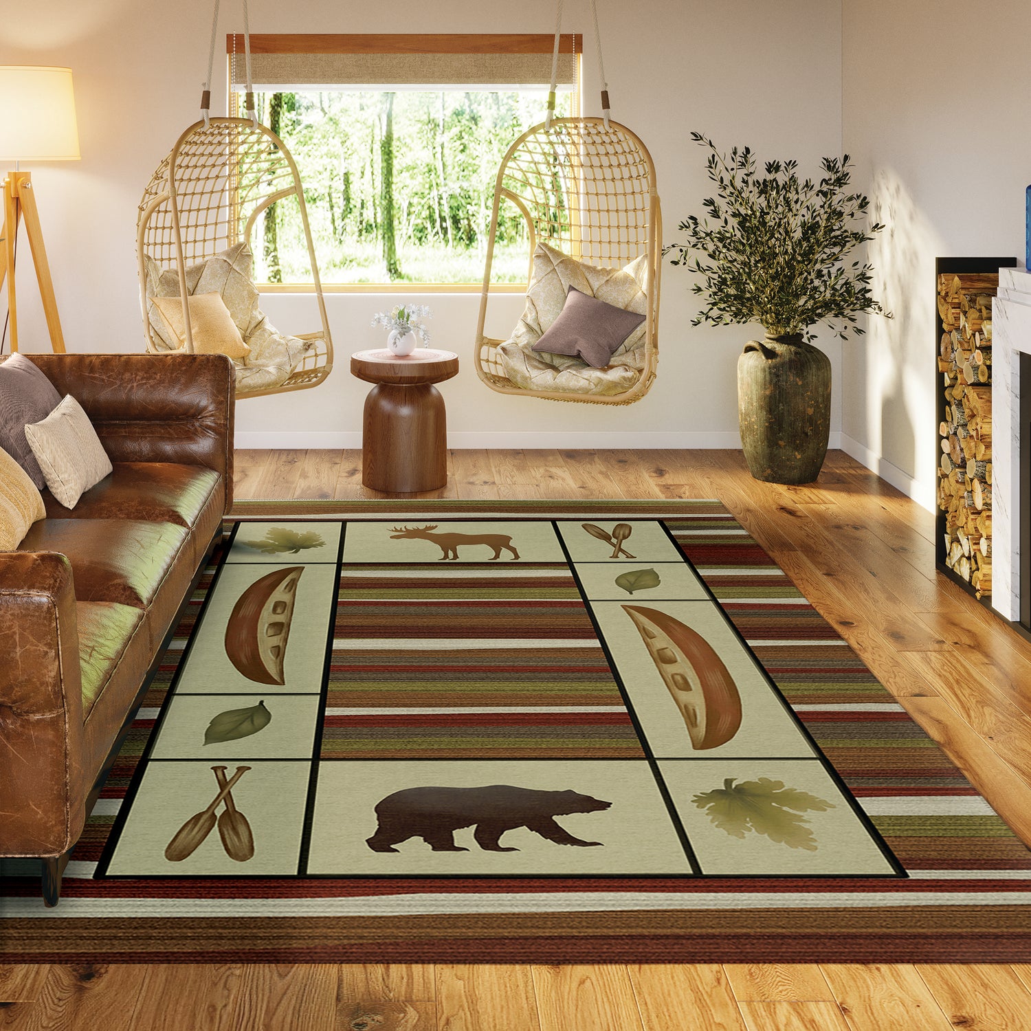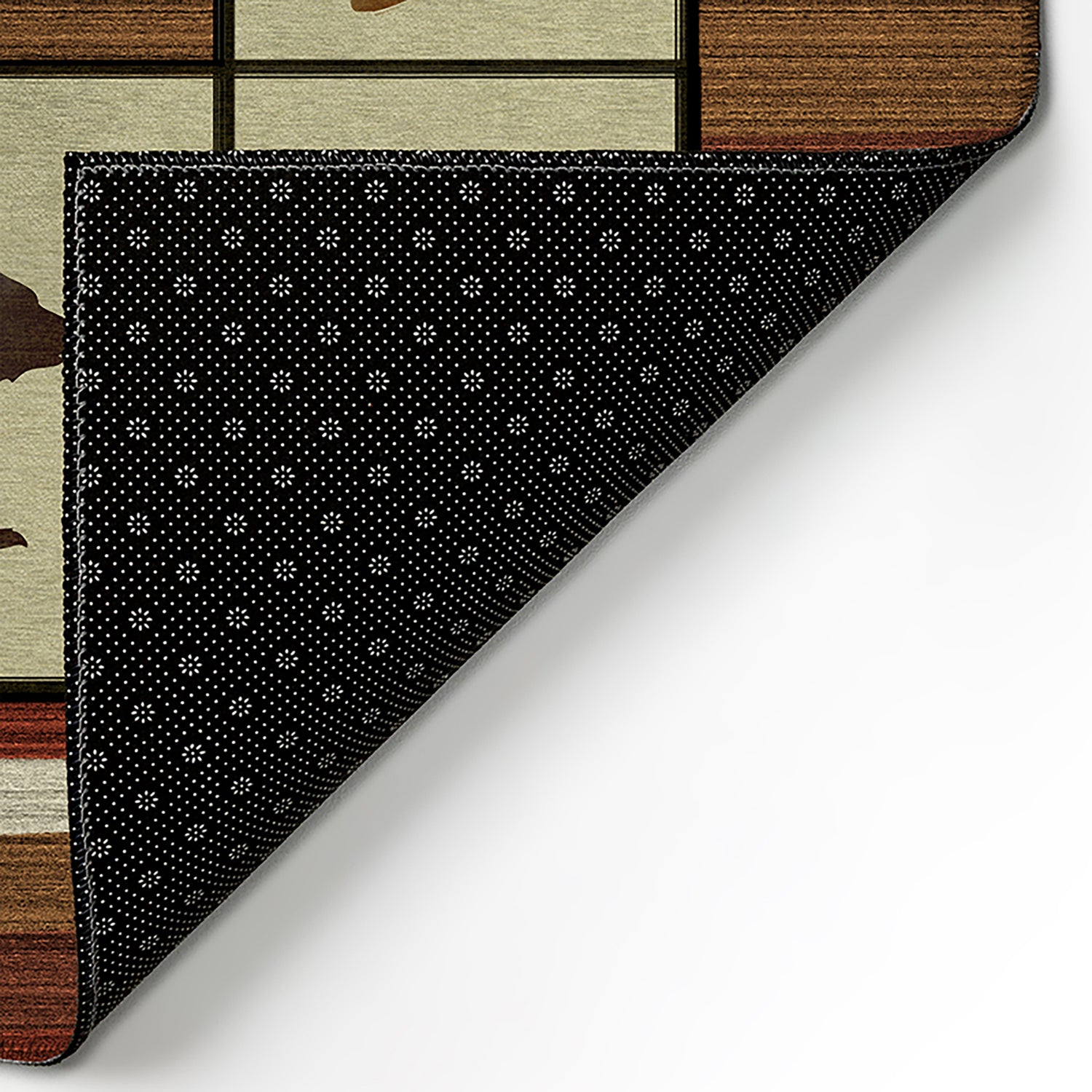 Bring rustic style to any space with this beautiful rug. Just pop it anywhere for a charming look. It features woodland creatures with geometric accents. The woven polyester construction is easy care and suitable for indoor or outdoor use. Rug features a durable yet soft design with a low profile that makes it ideal for busy areas like a patio, sunroom, kitchen, entryway, family room, living room and more. Versatile rug rolls up or folds with ease, so storage, cleaning, and placement are simple.Pattern varies slightly by size.