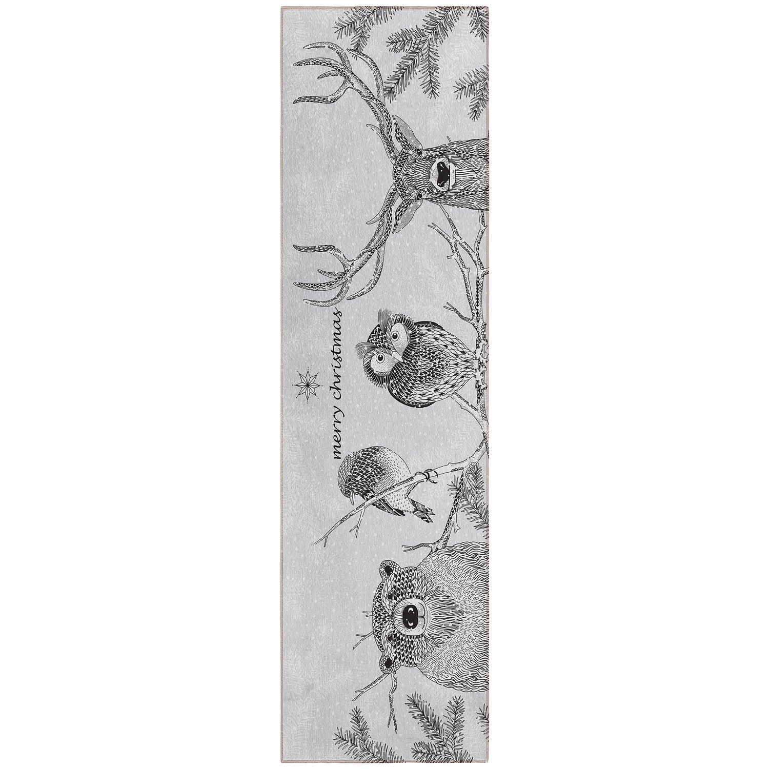 Set against a soft flannel-gray background, the rug’s neutral tones and whimsical design make it a warm and welcoming addition to any space—from your living room to your entryway or under the tree.
