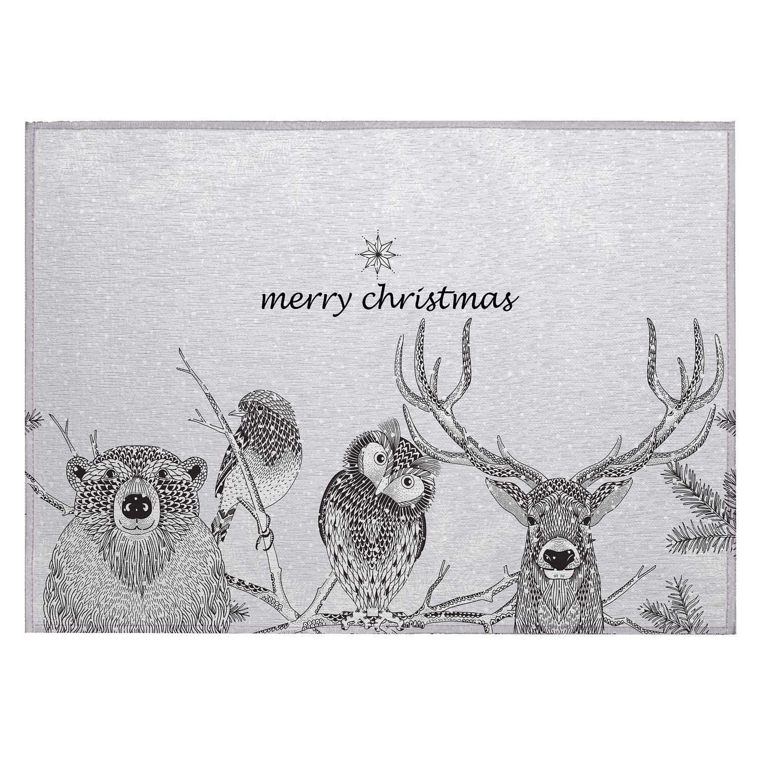 Celebrate the season with woodland charm using our Merry Christmas Woodland Animal Area Rug. This cozy winter rug features a hand-drawn style illustration of a cheerful deer, owl, bird, and bear perched among snowy pine branches, paired with the heartfelt message “Merry Christmas” and a guiding star.