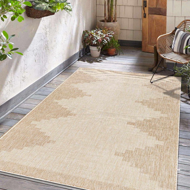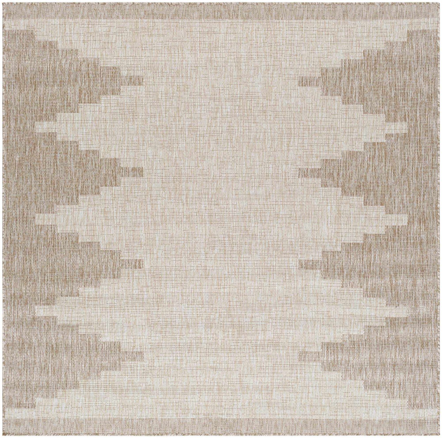 This outdoor rug showcases a striking Aztec-inspired geometric pattern, perfect for adding a touch of cultural flair to any patio or deck space. Its flat, no-pile design ensures durability and ease of cleaning, making it ideal for high-traffic outdoor areas. The rug's intricate design, coupled with its practicality, makes it an excellent choice for those seeking a blend of style and function in their outdoor decor. With its distinct pattern, this rug serves as a focal point, effortlessly enhancing the aesthetic of any outdoor setting.