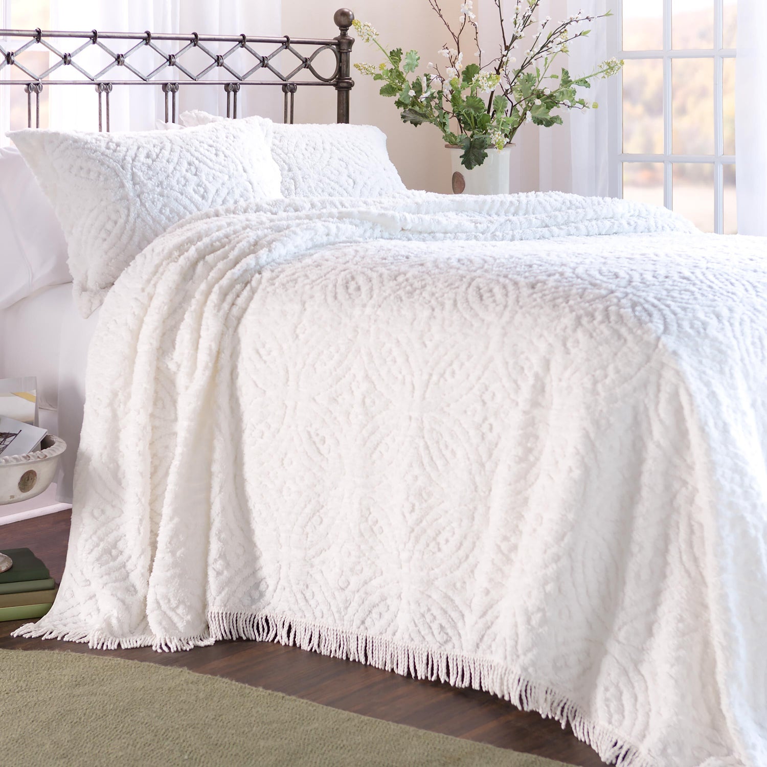 Relax into the ultra-plush softness of our traditional chenille sham. The classic tufted wedding ring pattern on this 100% cotton sham is enhanced by a flange edge. Dress your bed in this easy-care sham and your room will be transformed into a nostalgic look. Machine wash. Imported.