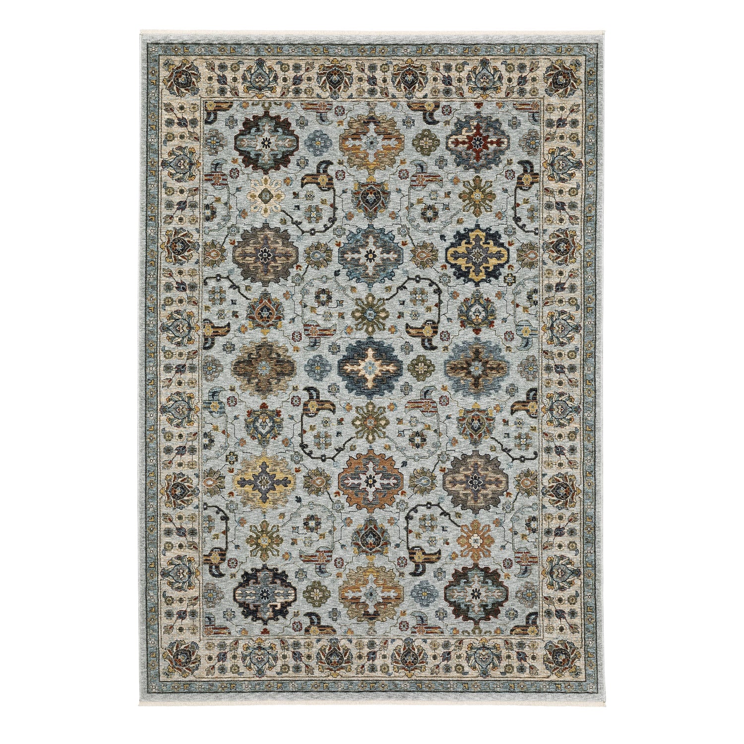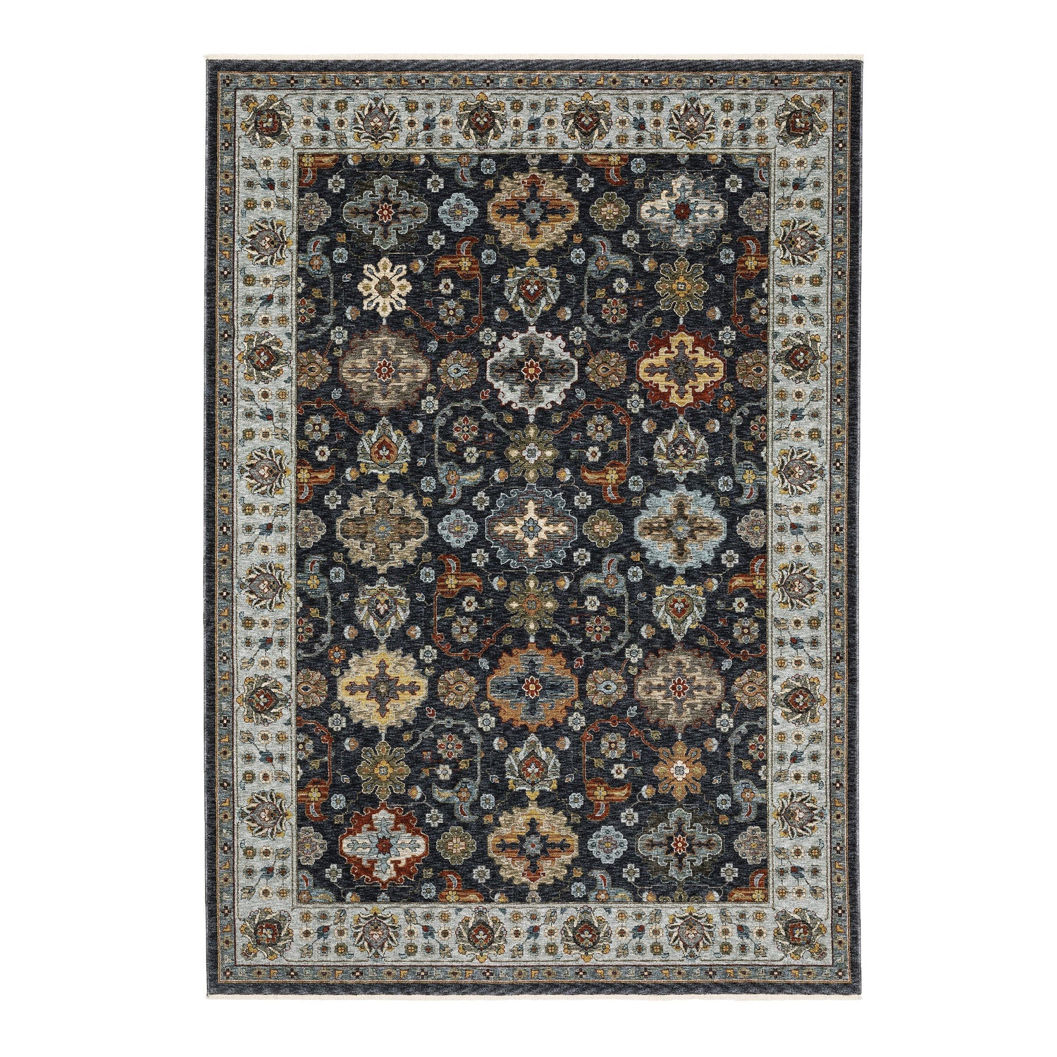 Minimal self-fringe adds intrigue and a bit of bohemian flare while the saturated jewel tones and intricate design details evoke feelings of nostalgia and offer authentic traditional appeal. The rug has a cotton canvas backing and a low ¼" pile which will clear most interior doors. Imported.