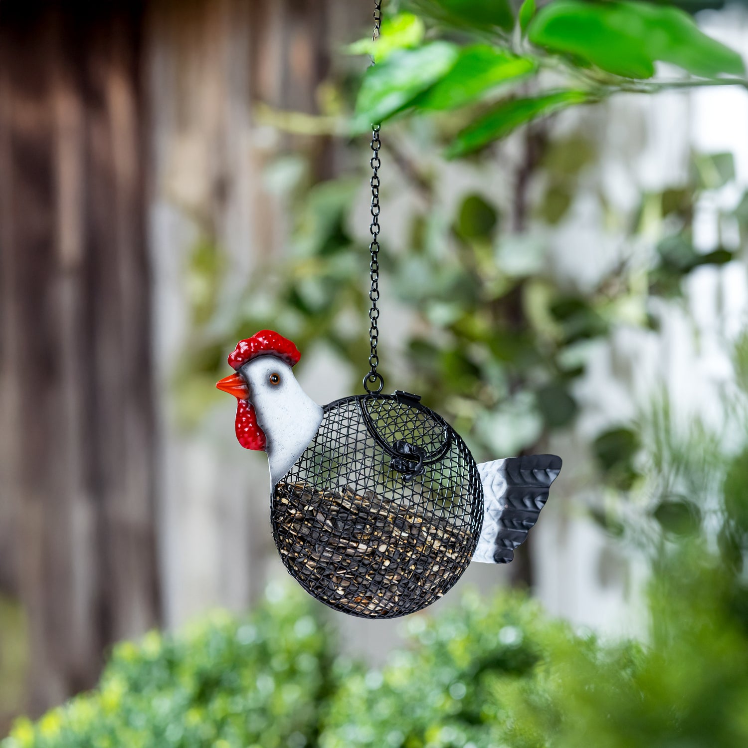 Petal & Plow Bird Feeder, Metal Rooster Seed Feeder