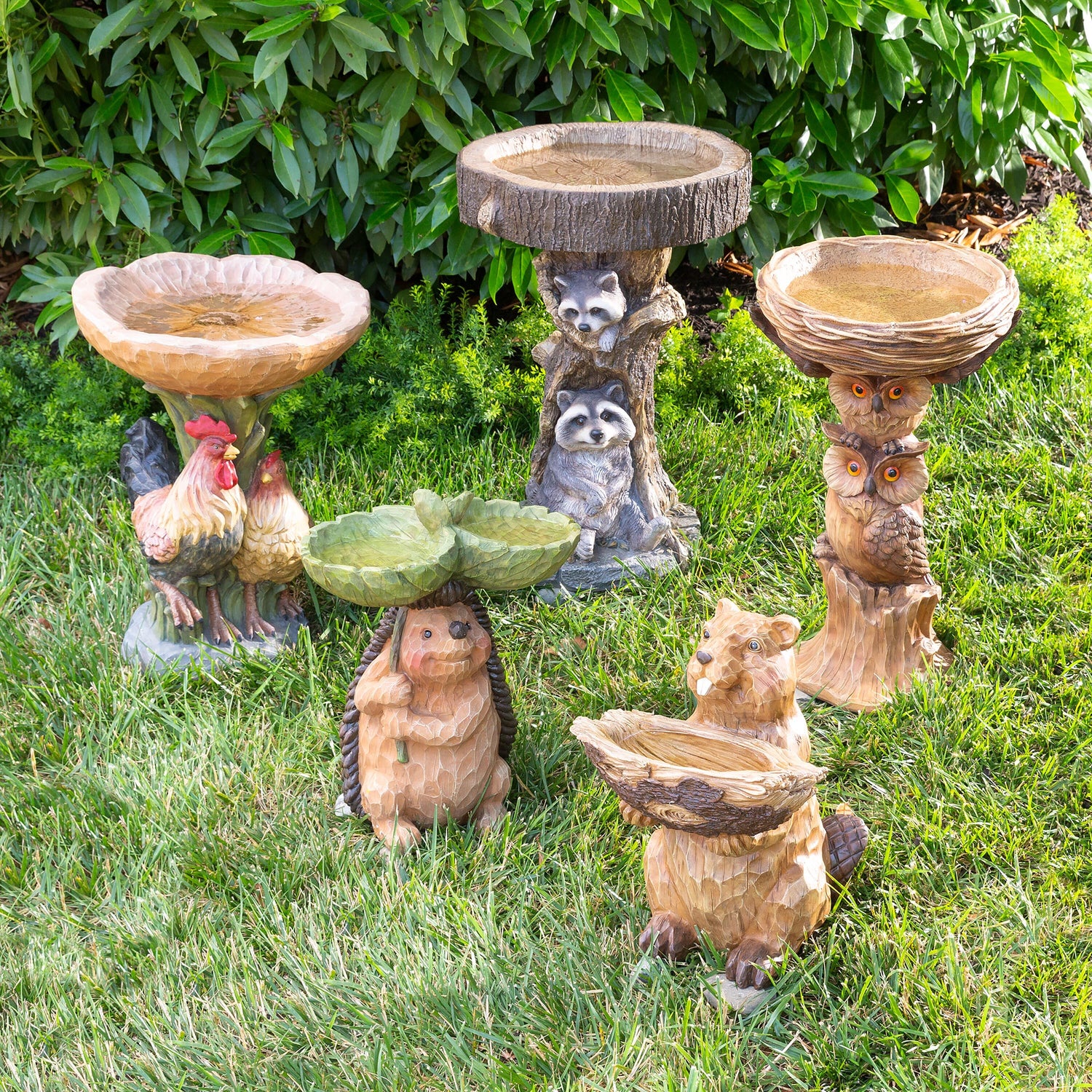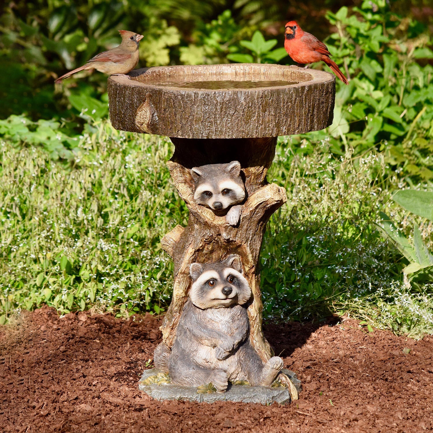 You'll love the playful design of this fun-loving birdbath. The raccoons are incredibly detailed for a lifelike look that will make you do a double-take: sweet faces full of expression, bright and curious eyes, natural poses and realistic features from nose to paws.