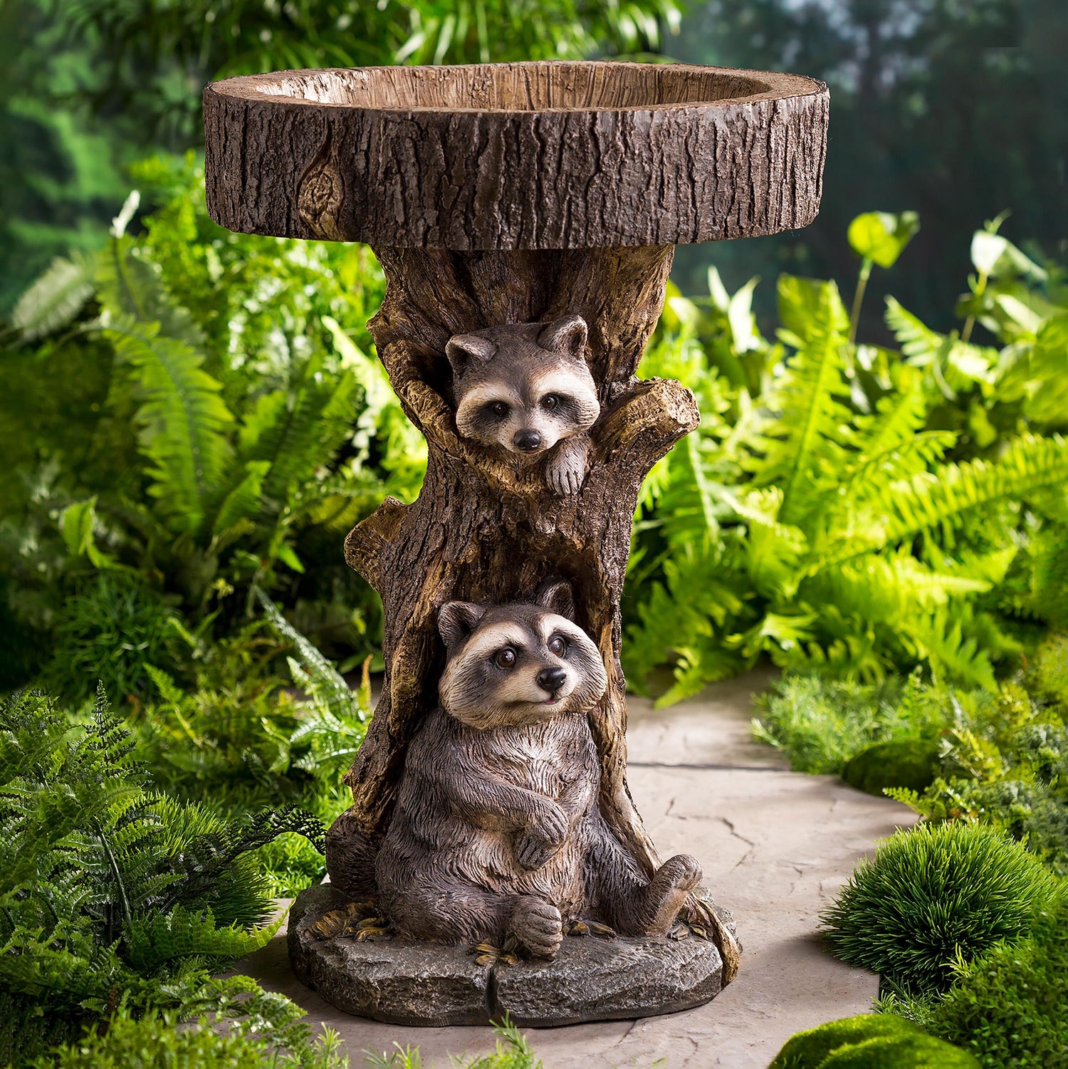 You won't mind this pair of raccoons in your yard! In fact, our Resin Raccoon Birdbath will attract birds, butterflies and other desirable creatures to come bathe or hydrate.
