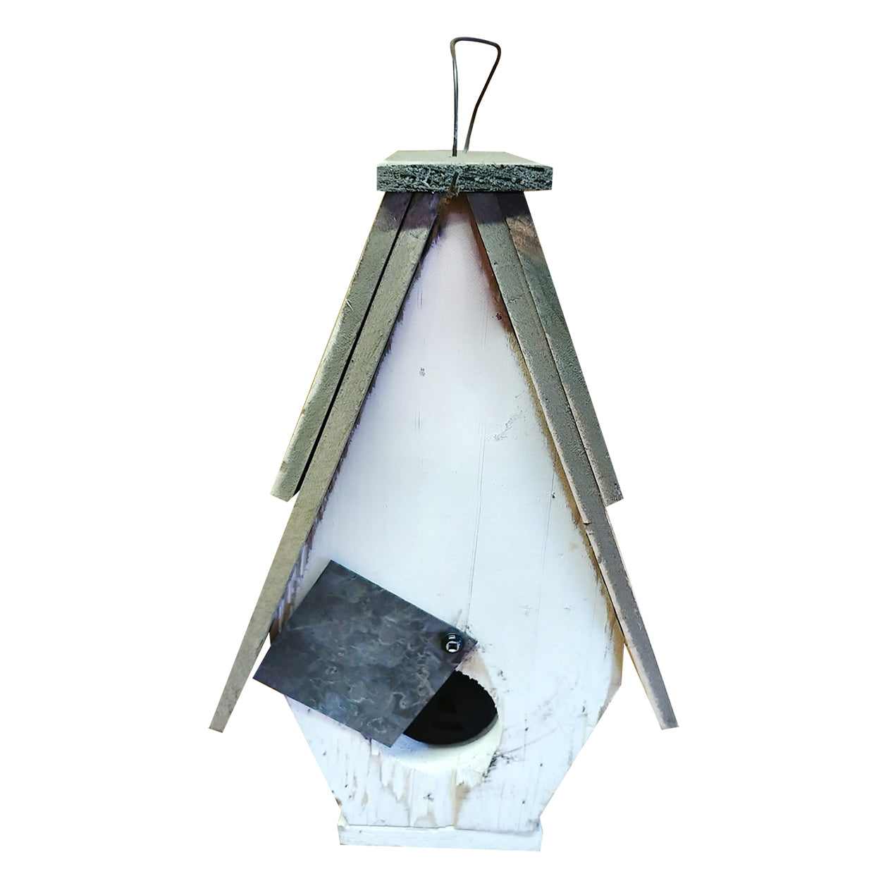 Has a cleanout, drainage and ventilation to keep the bird’s comfortable year- round. Wire hanger for installing. Perfect for wrens, finches, chickadees, and titmice.