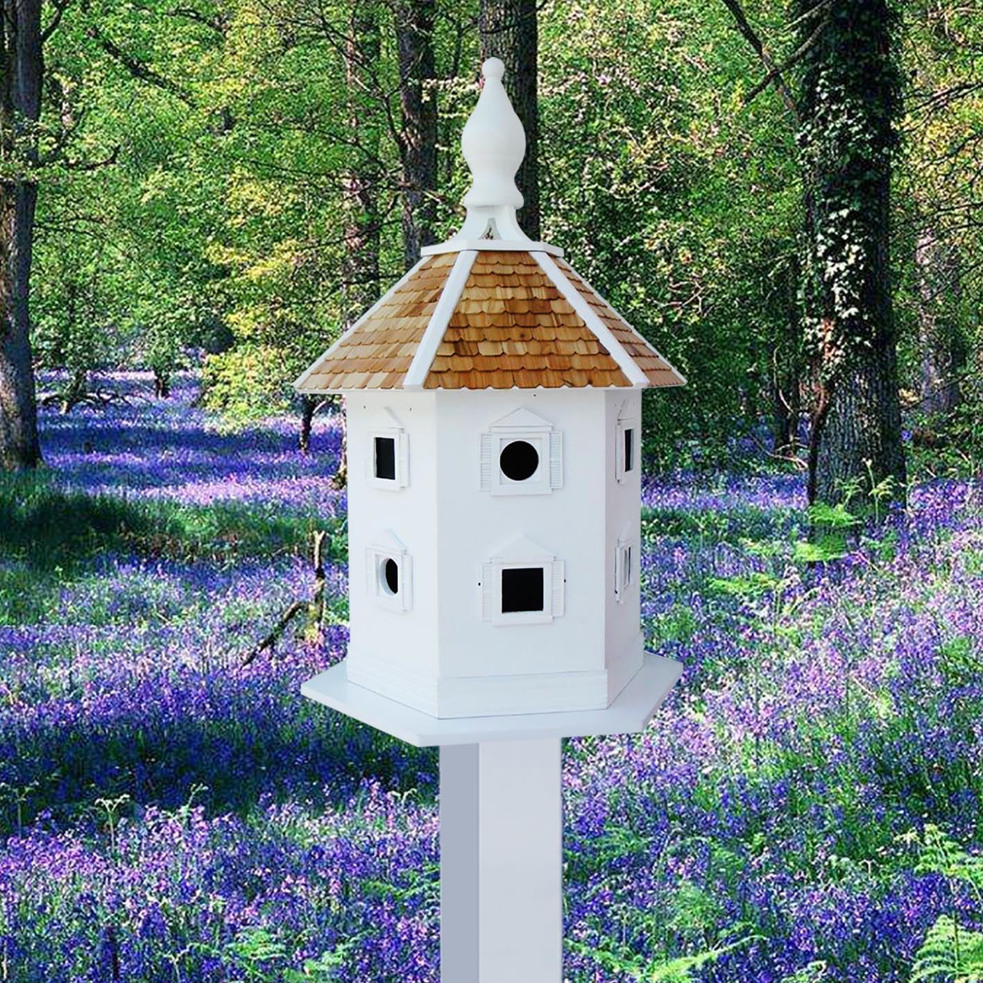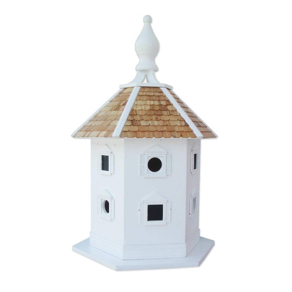 This Dovecote house is especially designed structure intended to house pigeons or doves. Throughout history, the possession of a dovecote has been a traditional symbol of status and power. In Medieval Europe, only nobles had the right to own dovecotes, but today, our adaptation of an English dovecote can become the focal point of your garden. The fully functional six sided birdhouse is divided into six separate compartments with a removable base for cleaning.