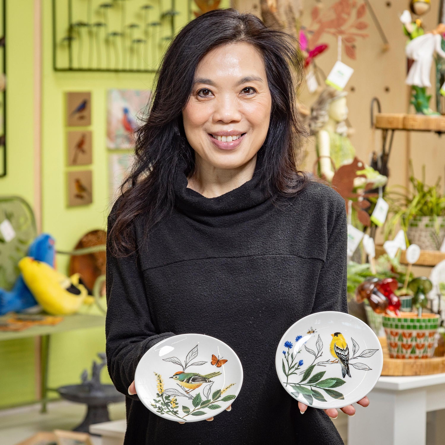 What She Shed Plates Ceramic Appetizer Plates Song Bird, 6", Set of 4, Gift Box