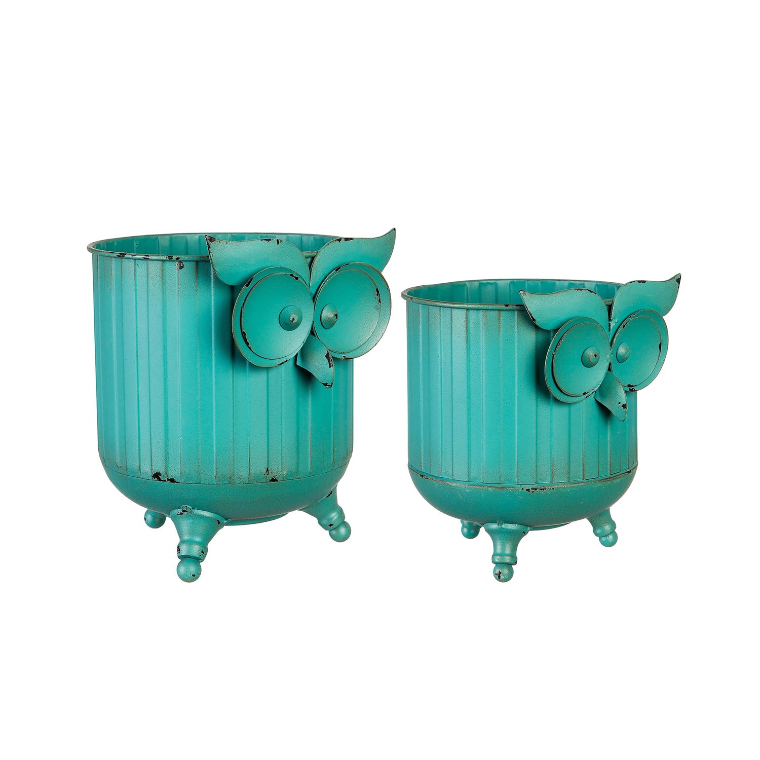These planters are a hoot! Spruce up your herbs, plants, flowers, and more with these enchanting metal owl planters. Each planter features a distressed verdigris finish with owl details to give off a charming effect. They are perfect for your patio or porch or wherever you wish to add a touch of whimsy. Made of high-quality iron, this set is indoor and outdoor safe. Displays small to medium-sized plants and will last season after season.