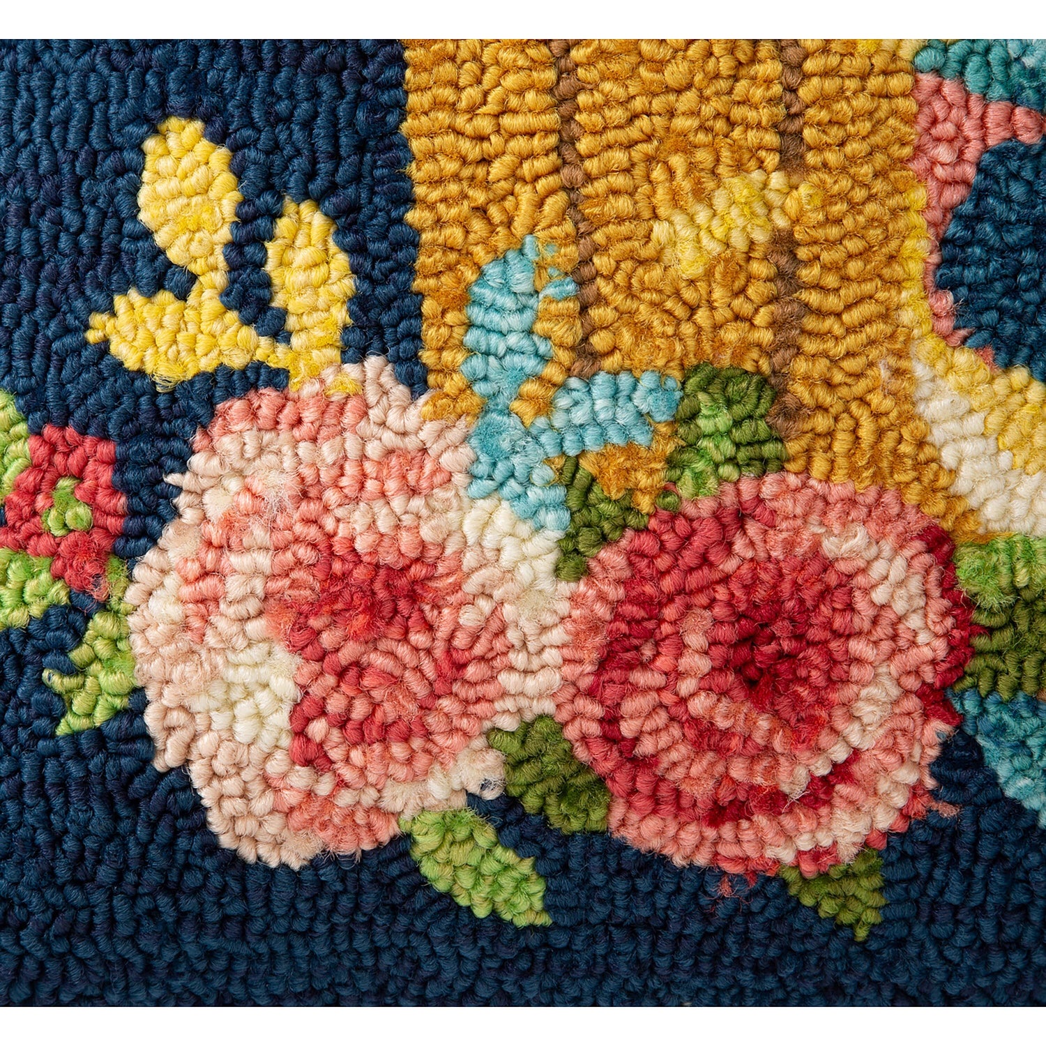 - Hand-hooked polypropylene face with a cheerful design