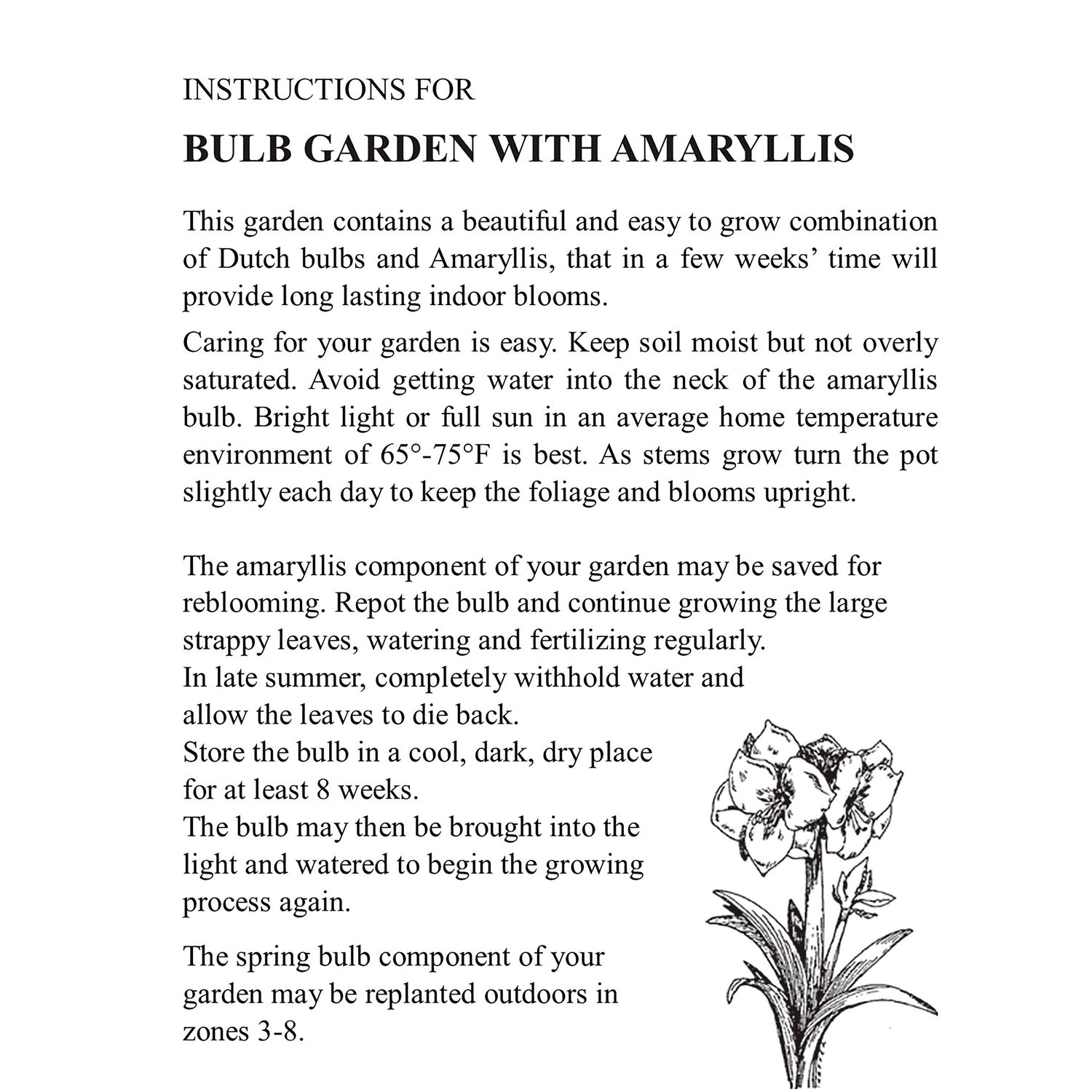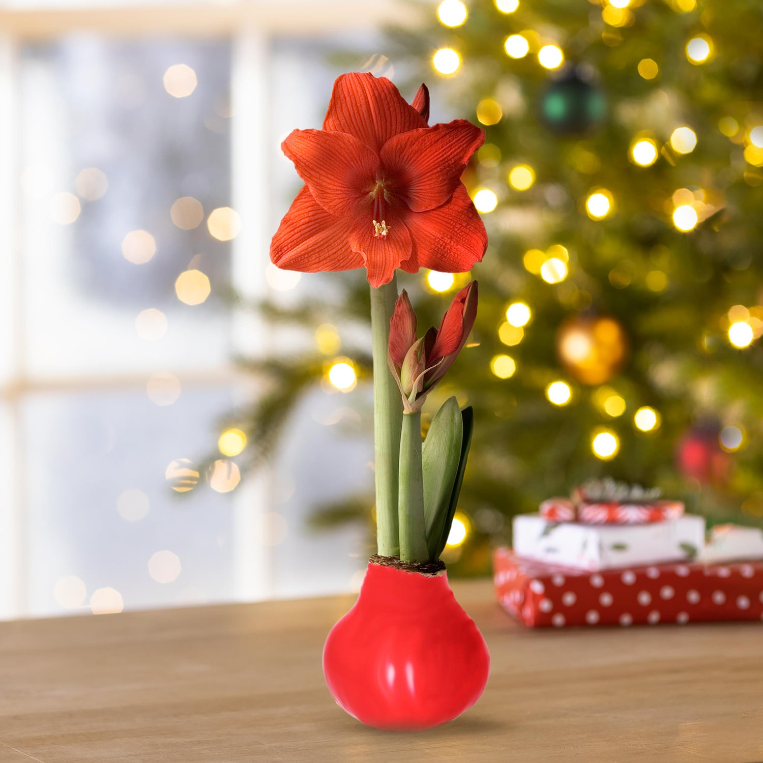 Bulbs are shipped in a dormant stage. Just place on an indoor surface and they'll bloom in a few weeks. Green bulb has a white flower; White and Red bulbs have red flowers. Imported from the Netherlands.