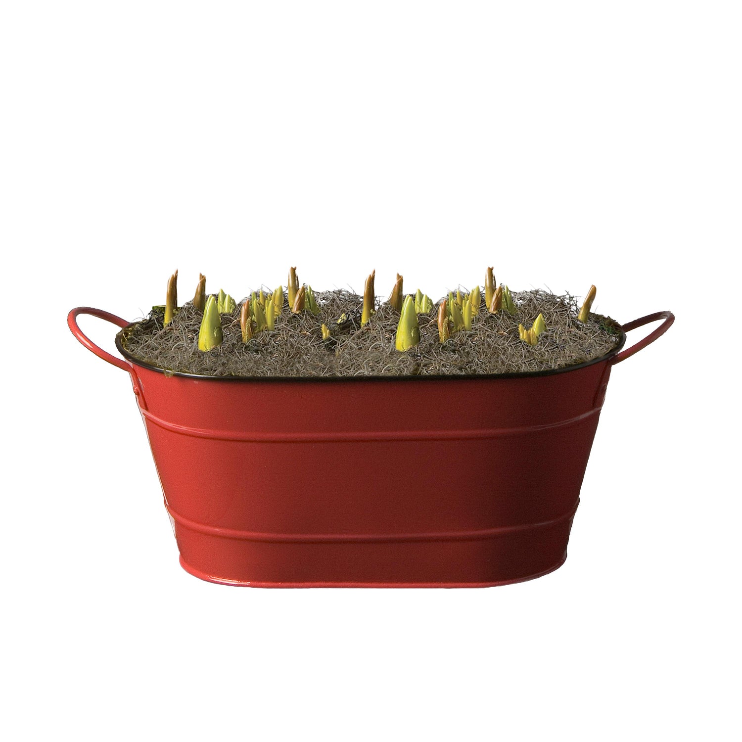 - Includes reusable red oblong planter, arrives in first stages of growth