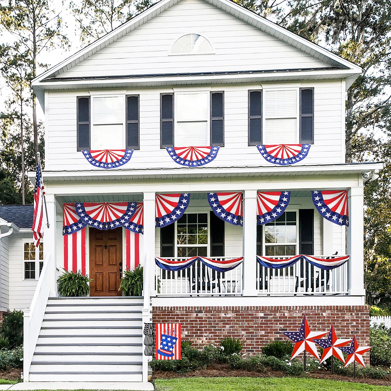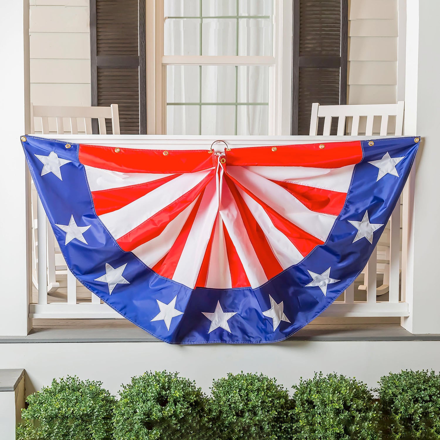 No house can go wrong with this classic bunting making a patriotic statement in your outdoor space. Whether you're celebrating Independence Day or showing your American pride, this bunting is perfect for porches, patios, fences, and more. The large applique Stars and Stripes bunting shows off American spirit in a bold yet sophisticated way. Simply tie this design to any outdoor space to instantly elevate your decor! Crafted from outdoor safe and weather-resistant 310 denier nylon, this rectangle bunting can be used in a variety of ways to spruce up homes for Independence Day and beyond. Also makes a great gift to anyone who loves showing off their patriotism.