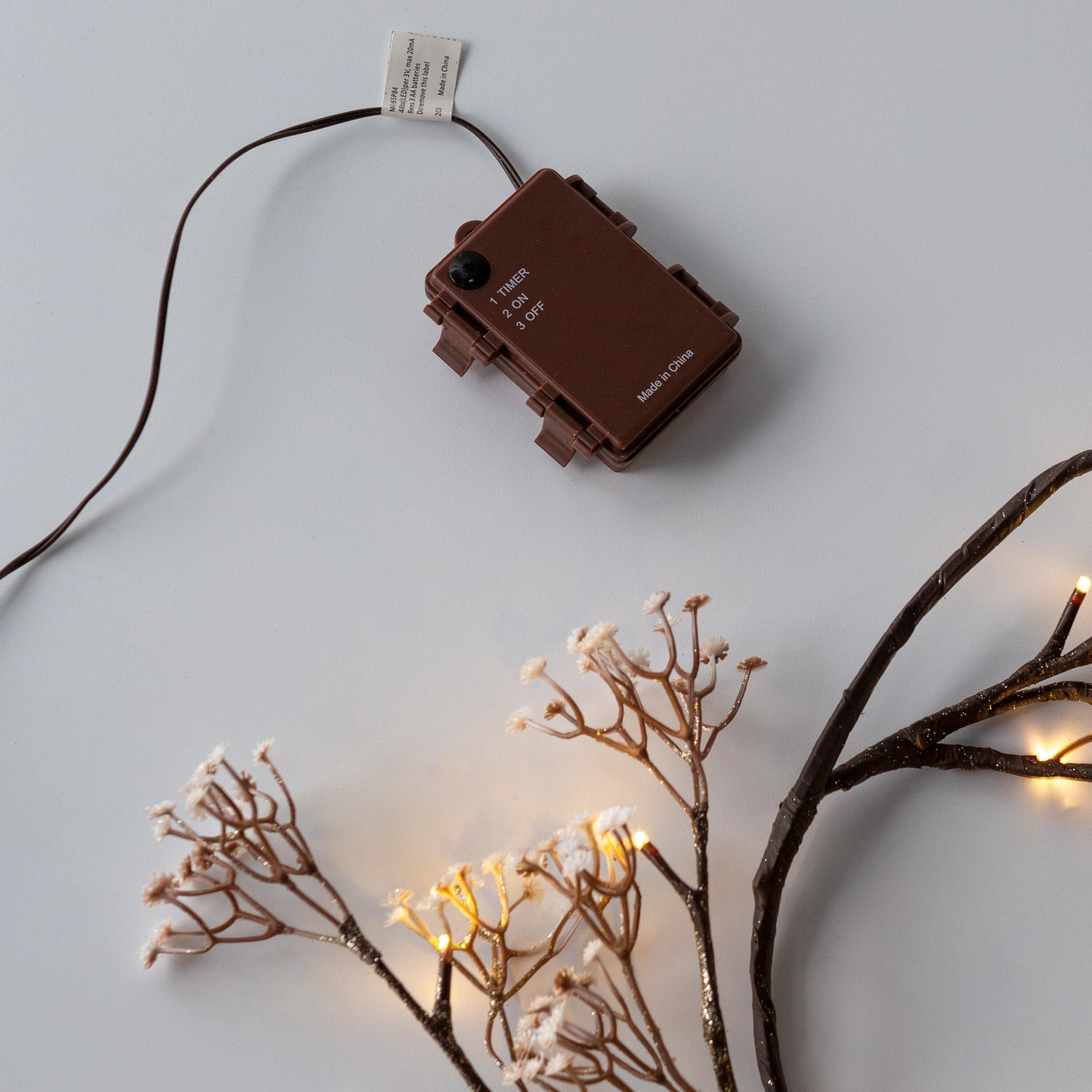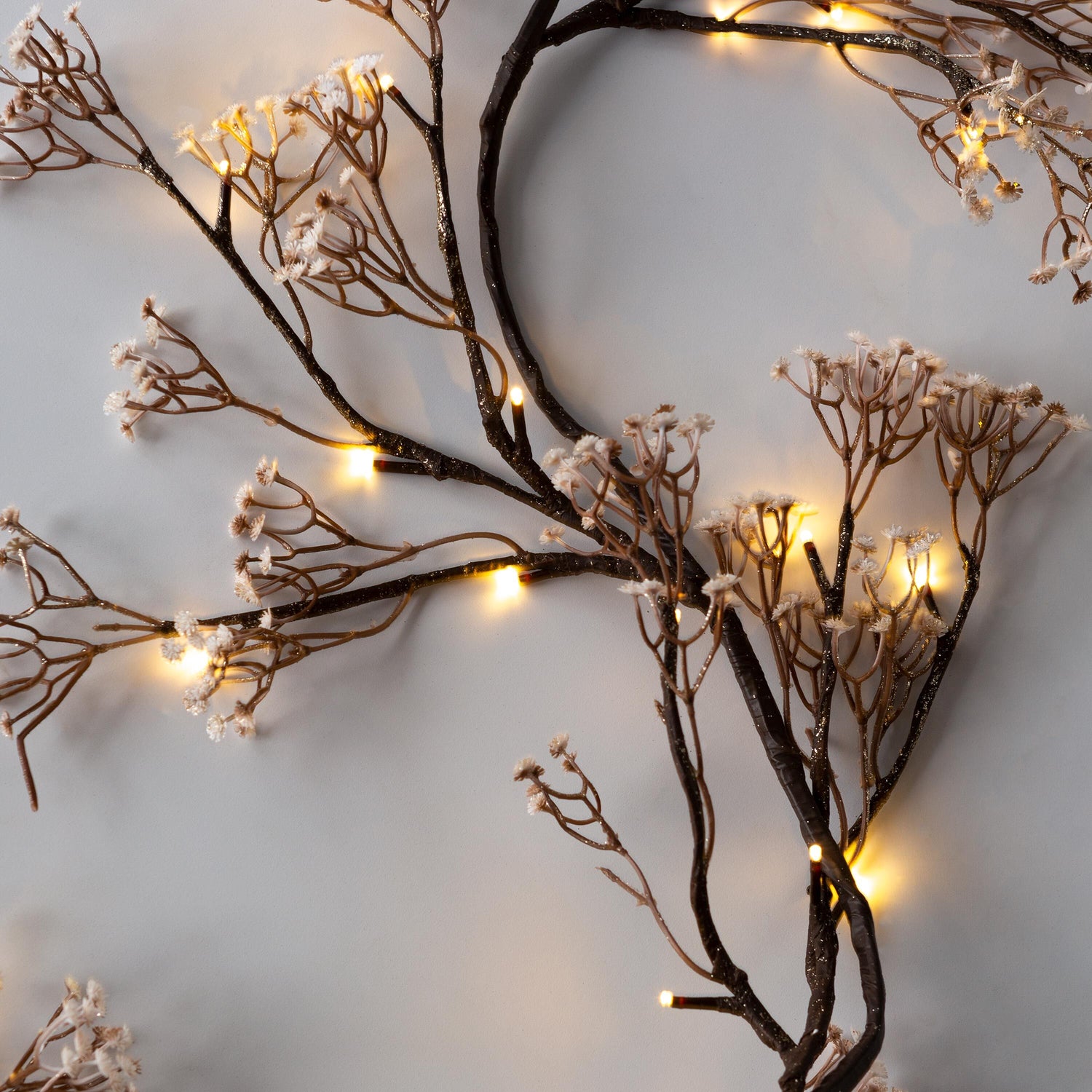 Beautifully formed with white floral clusters flecked with gold and 48 warm white LEDs on posable "branches" it lets you create a stunning lighted display.