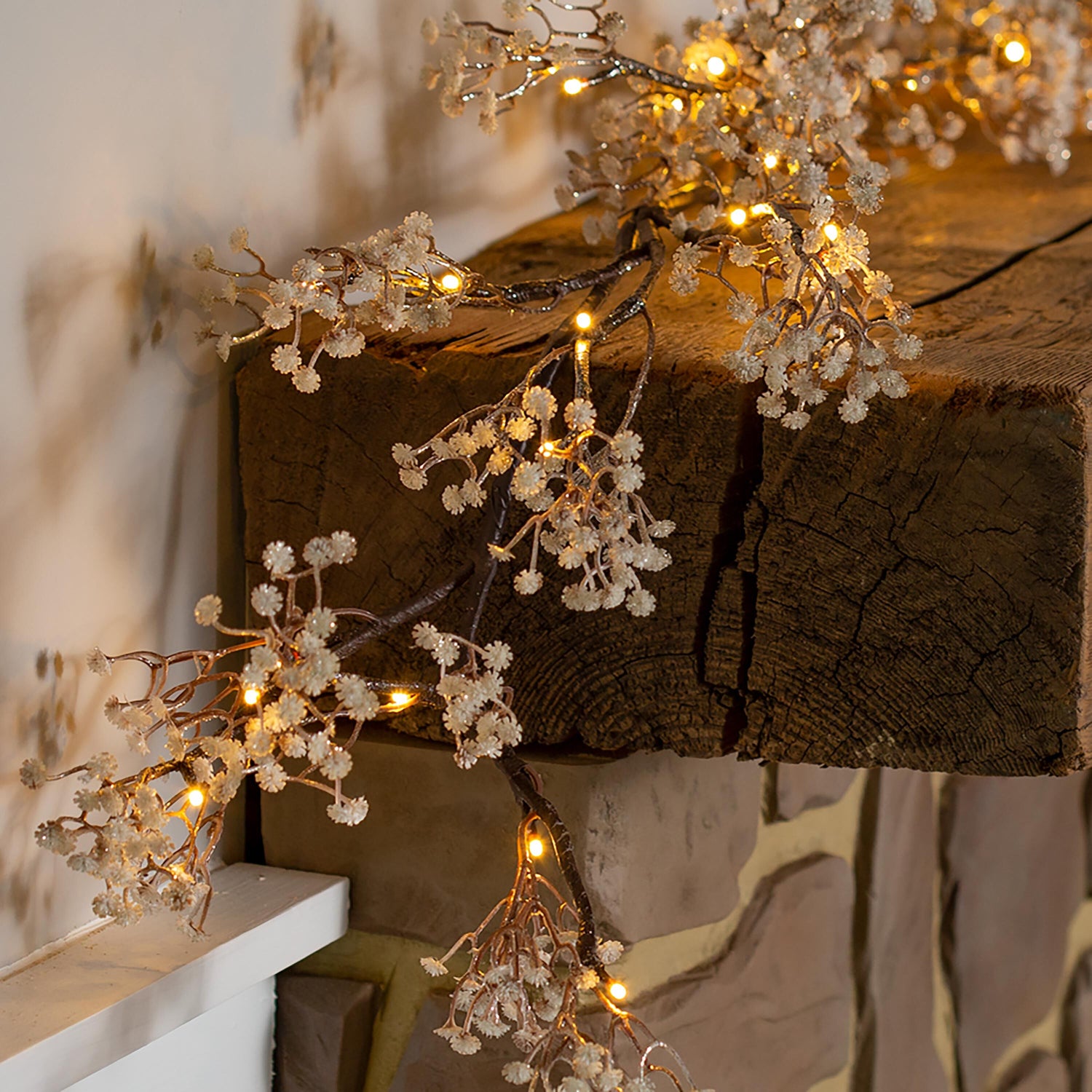 Indoor/Outdoor Lighted Baby's Breath Garland with Timer